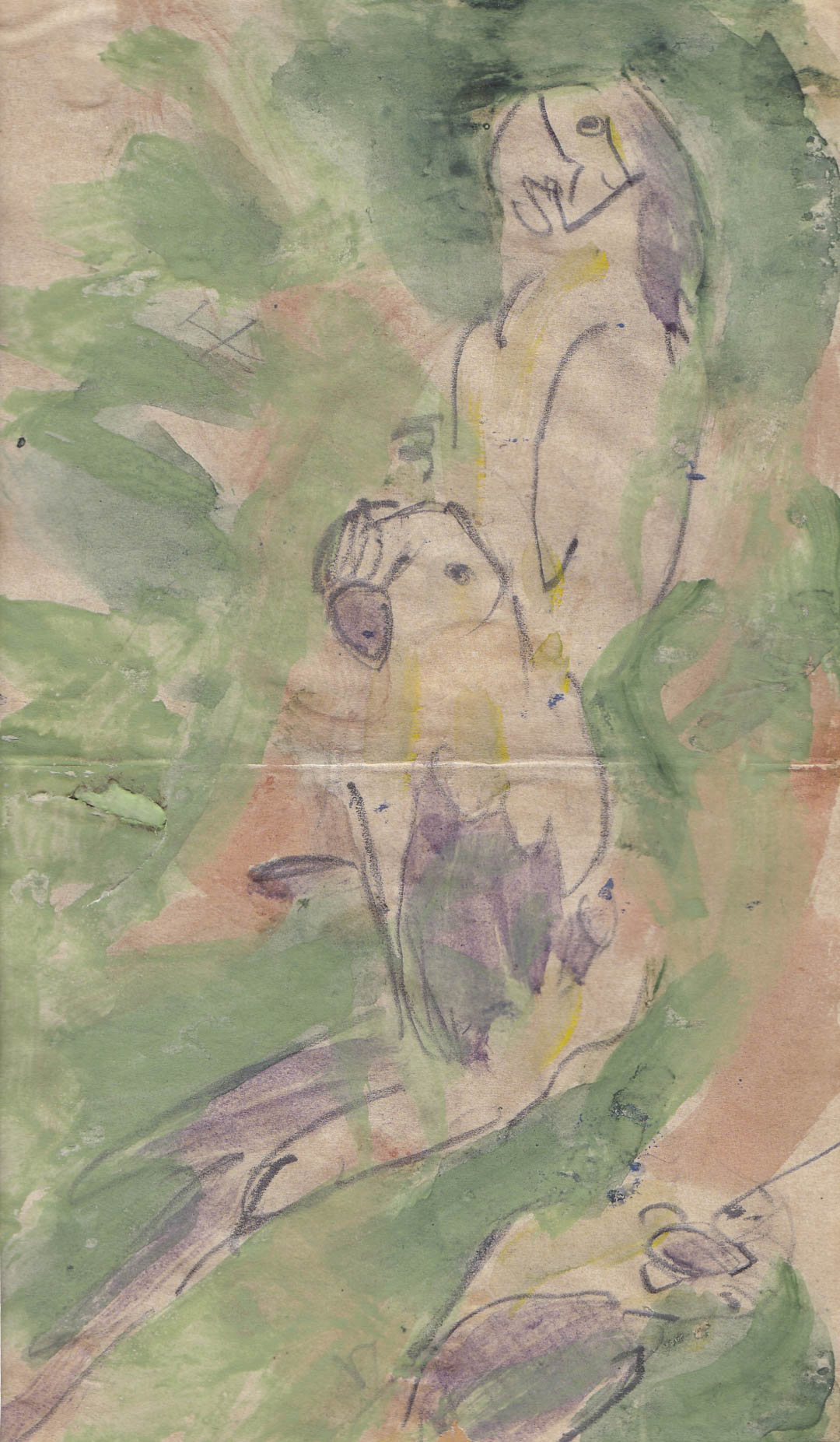 Hans Josef Weber-Tyrol (Schwaz 1874 – Meran/Merano 1957) Pappagalli;Acquerello, matita, 12 x 20,5 cm, piccolo buco,