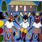 George Lilanga Watoto wa shule olio su masonite, cm. 61x61  Firma in basso a sx  Certificato di autenticità a cura della Capt. Felix Lorenz,Lauenburg (Elbe) Germania