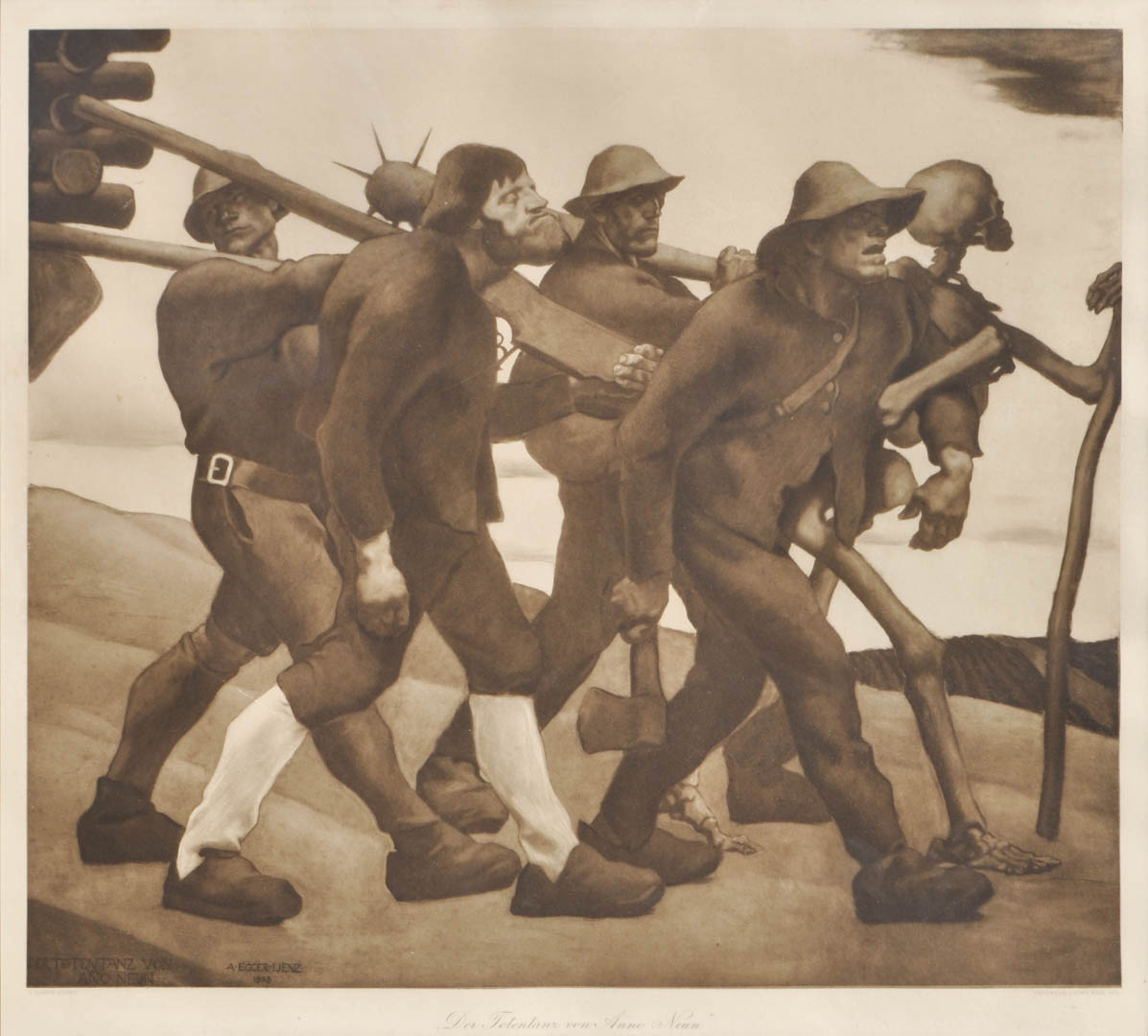 Albin Egger-Lienz (Stribach, 1868 – St. Justina, Bozen 1926) La danza macabra dell’anno nove, 1908;Heliogravure, 57 x 62,5 cm, in cornice