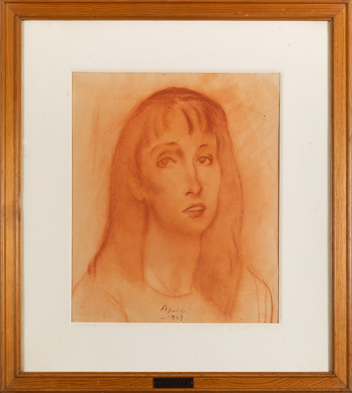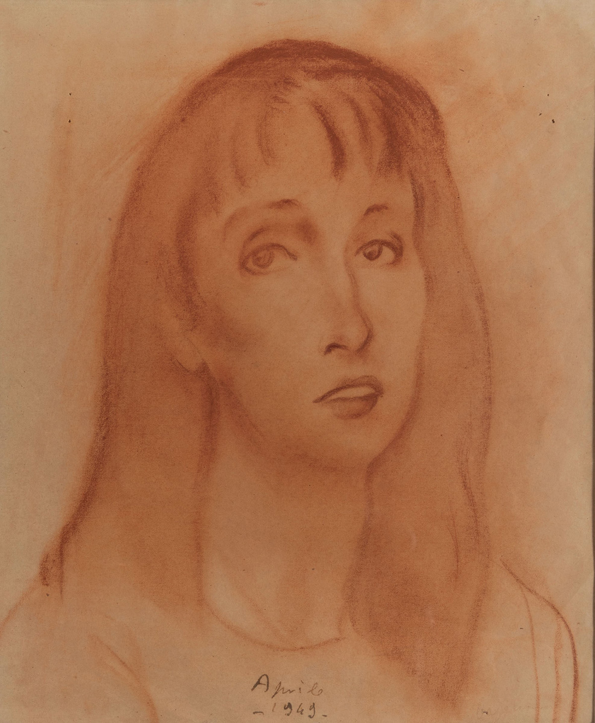 Felice Carena (1879-1966), La figlia dell'artista, 1949, carboncino su carta, cm 40x35,5 datato in basso al centro