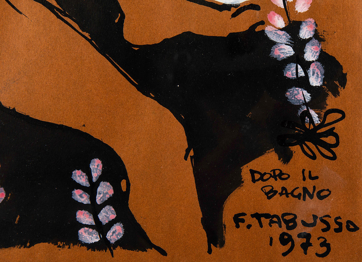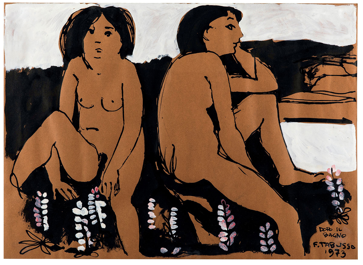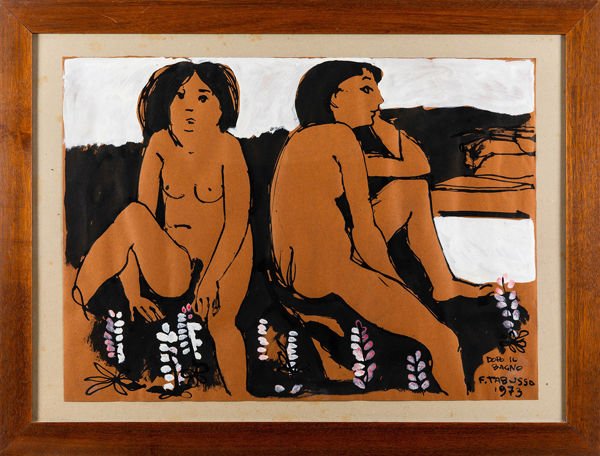 Francesco Tabusso (1930-2012), Dopo il bagno, 1973, tempera su carta, cm 48x66 firmato, intitolato e datato in basso a destra