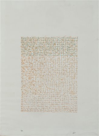 Vincenzo Accame (1932 - 1999), Scrittura, 1974, inchiostro su carta, cm 69x51,5 firmato in basso a destra, datato in basso a sinistra