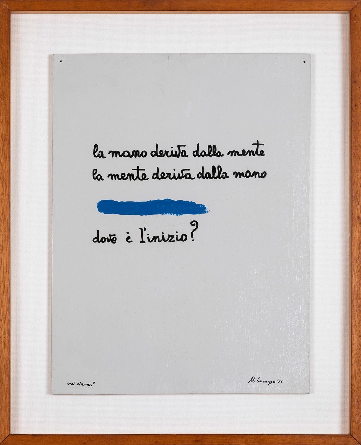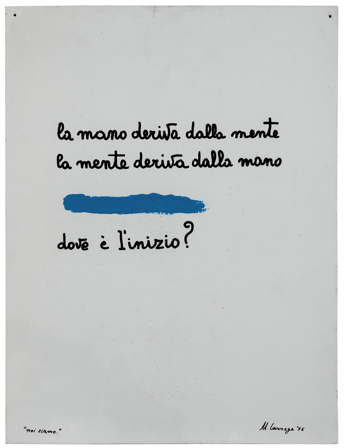 Ugo Carrega (1935), Noi siamo, 1976, tempera su tavola, cm 44x33 firmato e datato in basso a destra, intitolato in basso a sinistra