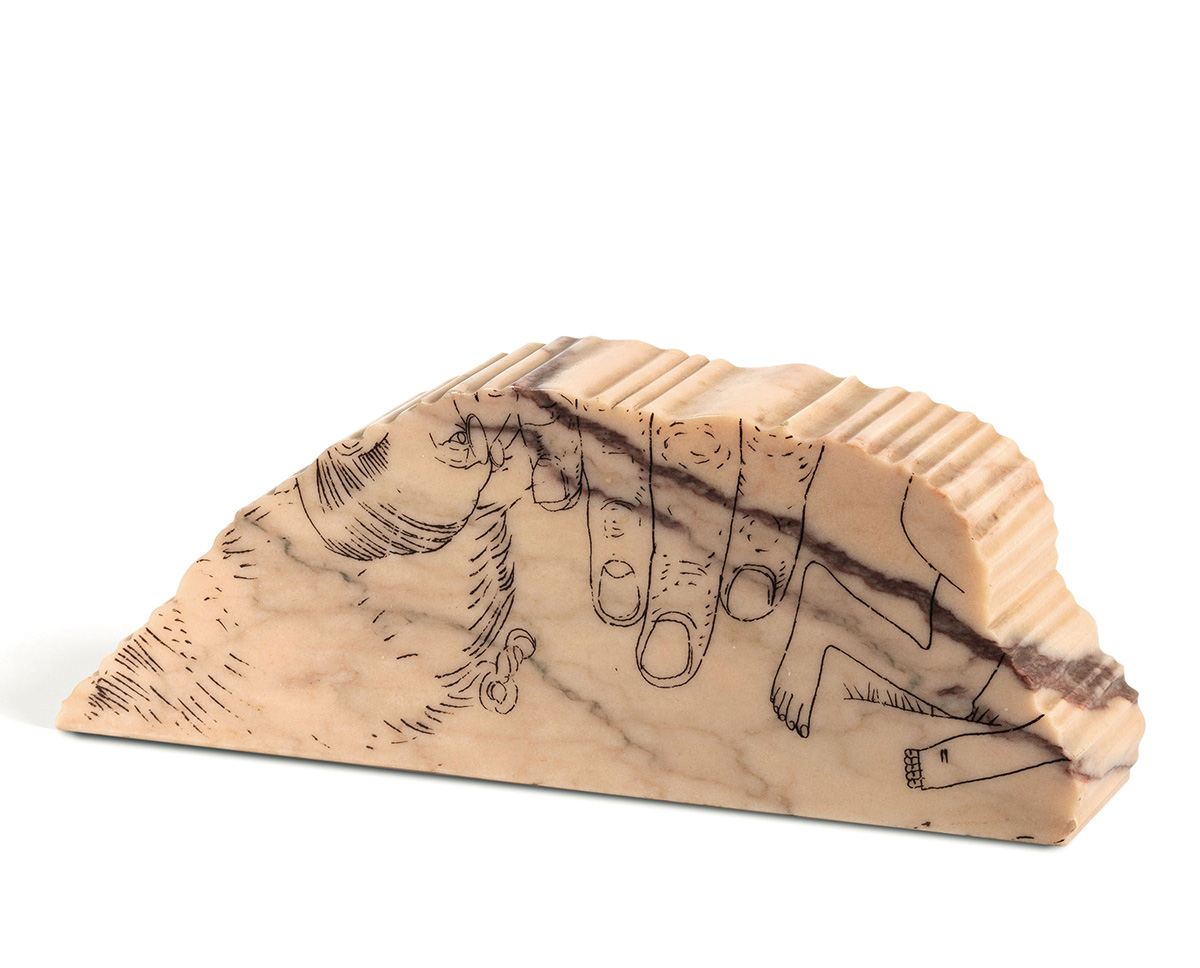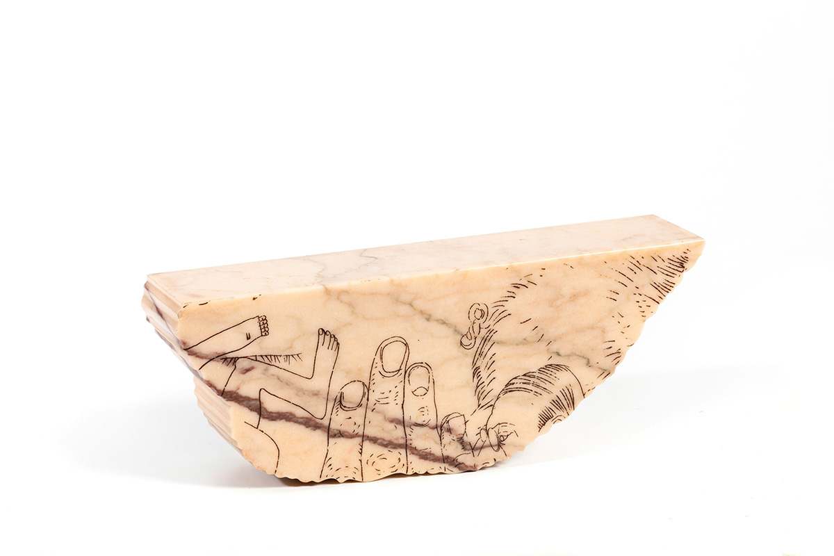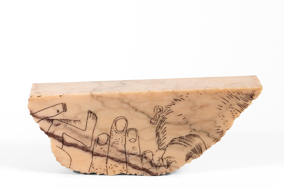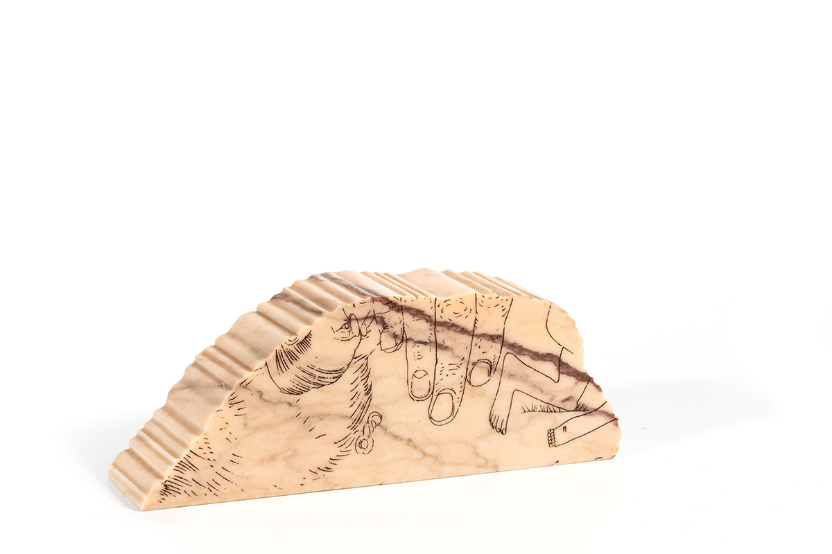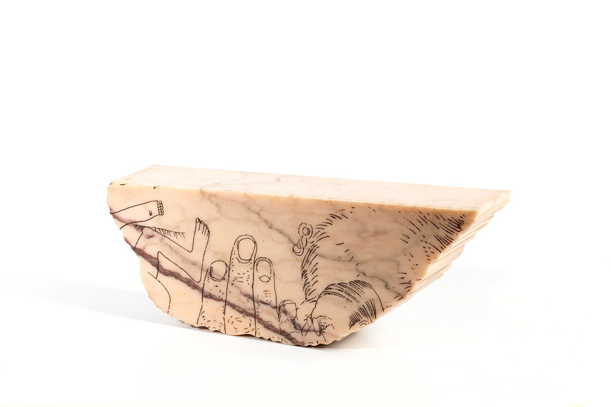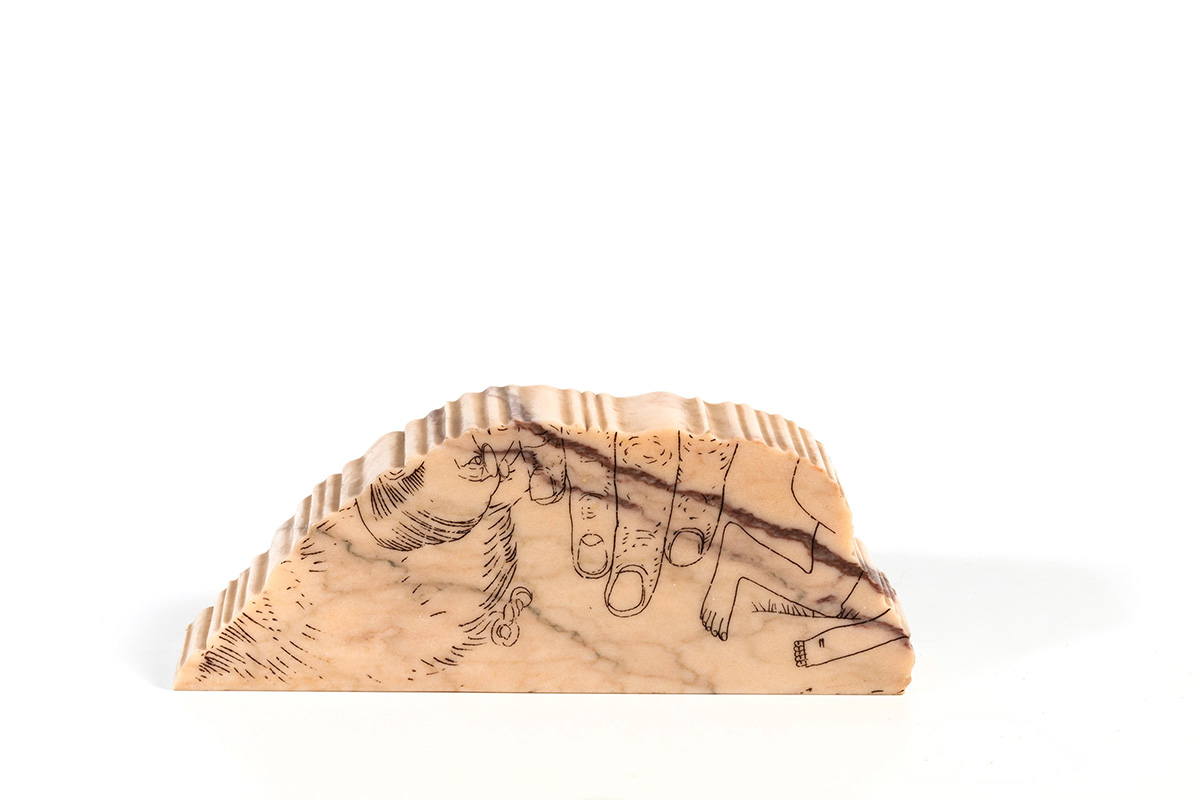 Concetto Pozzati (1935), Senza titolo, anni ‘80, inchiostro su marmo, cm 45x17
