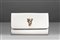 Pochette in pelle bianca con fibbia scultura "V", tracolla asportabile, dustbag originale (cm 23)