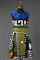 Vestito corto senza maniche in lana e seta, gonna svasata, decoro a greche irregolari nei toni del bianco, nero, rosso, verde e giallo (tg. 40 circa)
