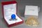 Lotto composto da due piccoli fermacarte. Uno raffigurante una pantera in metallo con palla di vetro blu e l'altro in vetro convesso inciso, entrambi in confezione originale