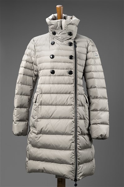 MONCLER Piumino 3/4 color grigio tortora con motivo di bottoni a doppiopetto (t