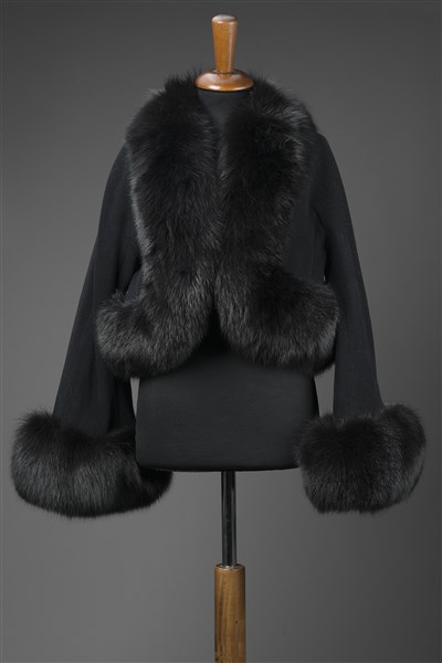 Giacchino nero in lana double con bordi in volpe (tg. M)