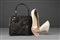 Lotto composto da una piccola borsetta a due manici in tessuto tecnico con ricami di fiori in rilievo e un paio di décolté "peep toe" in vernice sfumata dall'avorio al beige (tg. 38) (cm 17) (lievi segni d'uso)