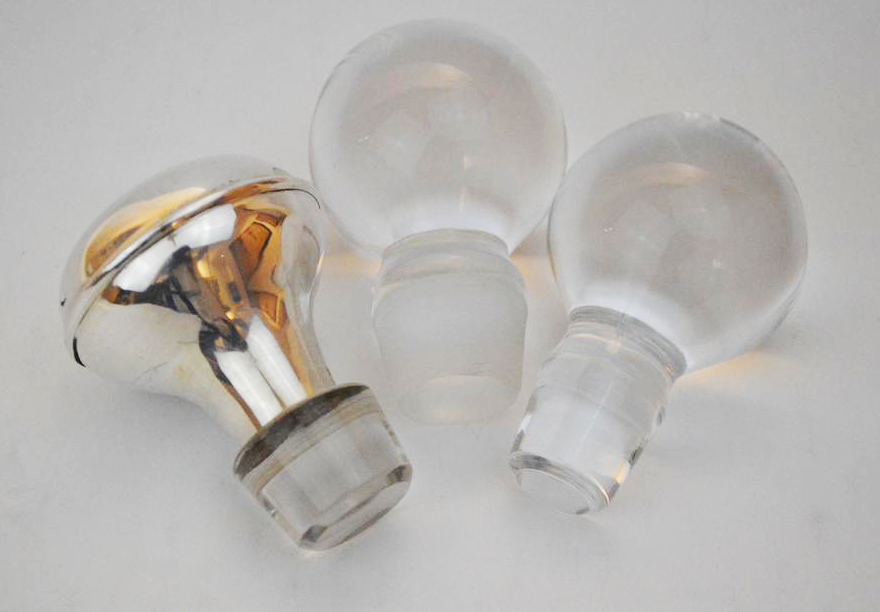 LOTTO DI TRE TAPPI IN VETRO due completamente in vetro ed uno laminato in...