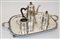 rispettivamente composto da un vassoio cesellato e sbalzato con bordo nervato di cm 60x36, una teiera, una zuccheriera ed una lattiera