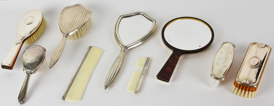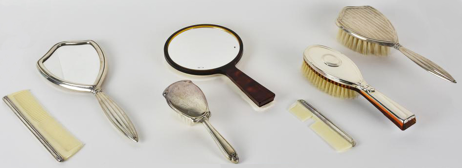 SET DA TOELETTA COMPOSTO DA 9 PEZZI IN ARGENTO