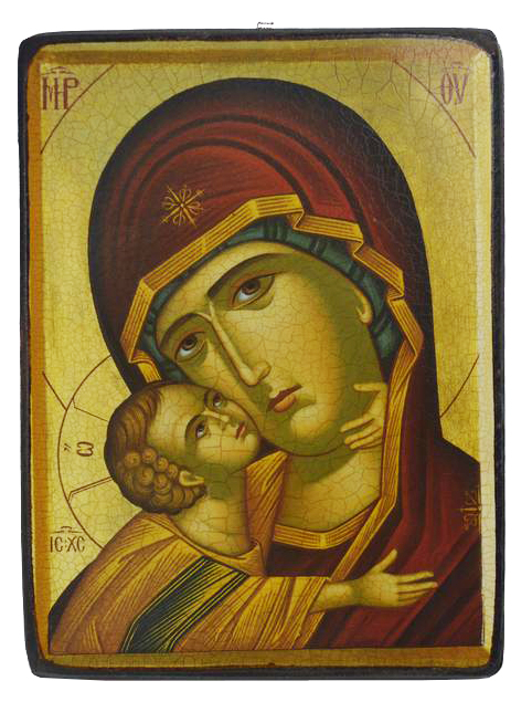 UNA TAVOLA IN LEGNO RAFFIGURANTE MADONNA CON BAMBINO