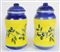 dipinti a mano in colorazioni blu e gialle, al centro decori vegetali,cm 12x12x22