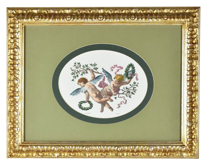 Lotto 55 | STAMPA A COLORI SU CARTA raffigurante coppia di putti alati festanti, da...