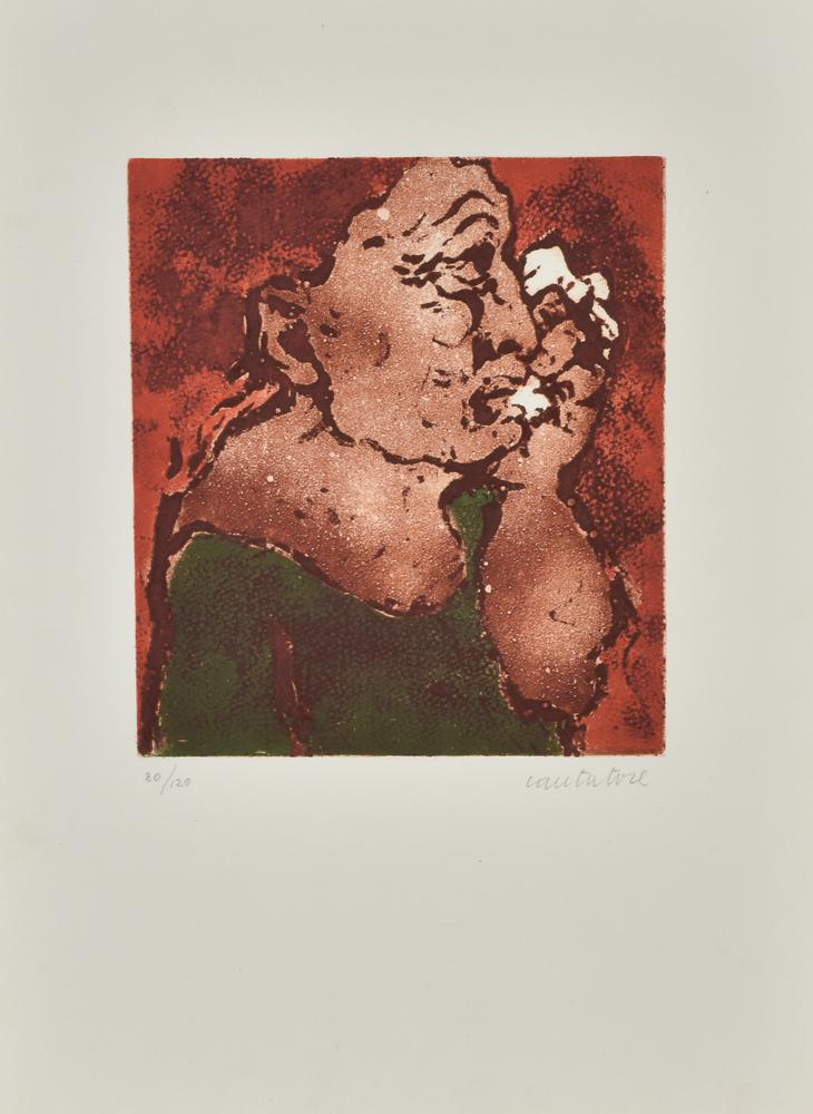 Domenico Cantatore DONNA CHE PIANGE acquatinta su carta, cm 49x35 (lastra cm...