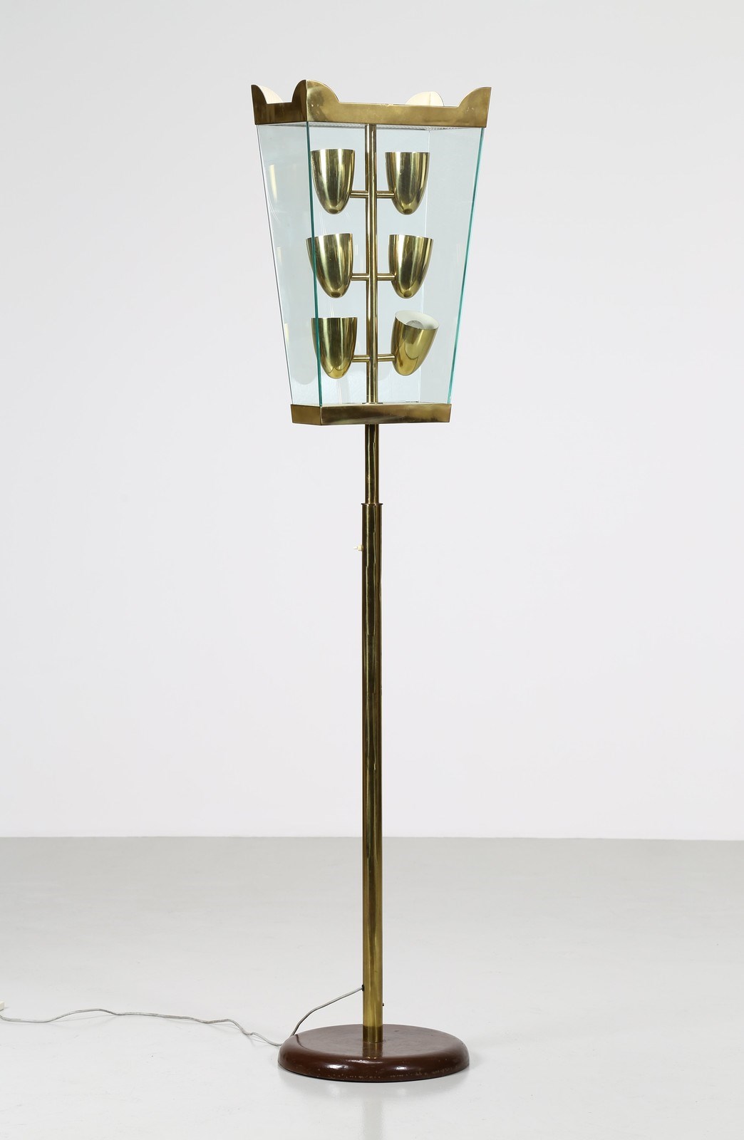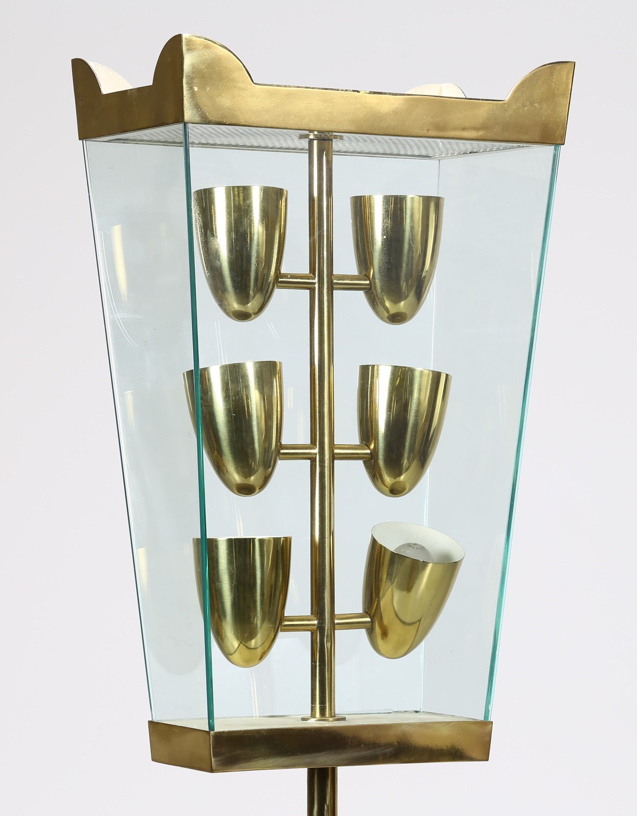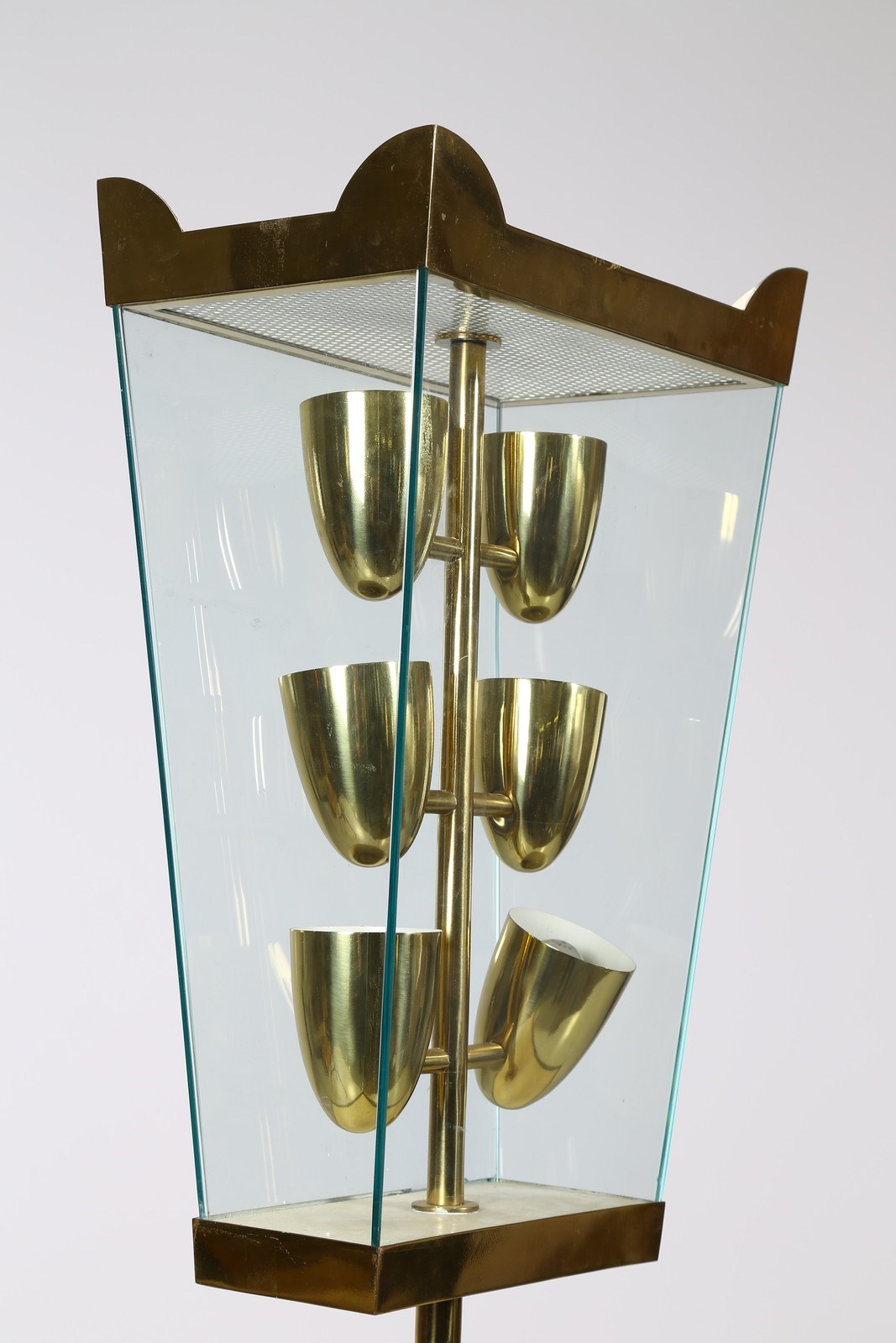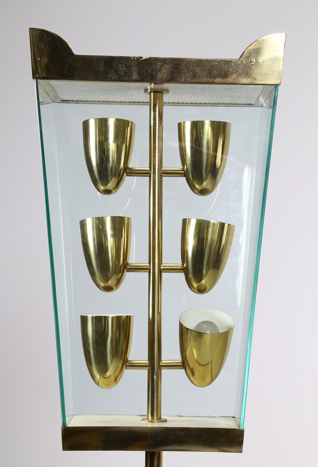 CHIESA PIETRO (1892 - 1948) Lampada da terra. Vetro e ottone. Cm 40,00 x 206,00 x 40,50. Lampada da terra in ottone, metallo laccato e vetro, anni 40.