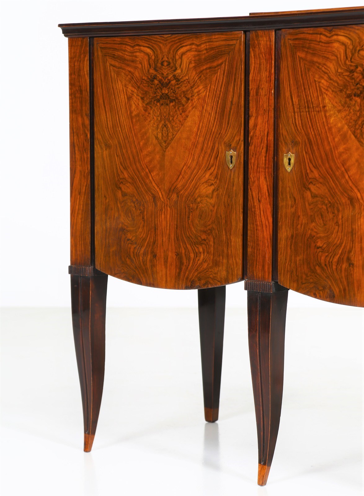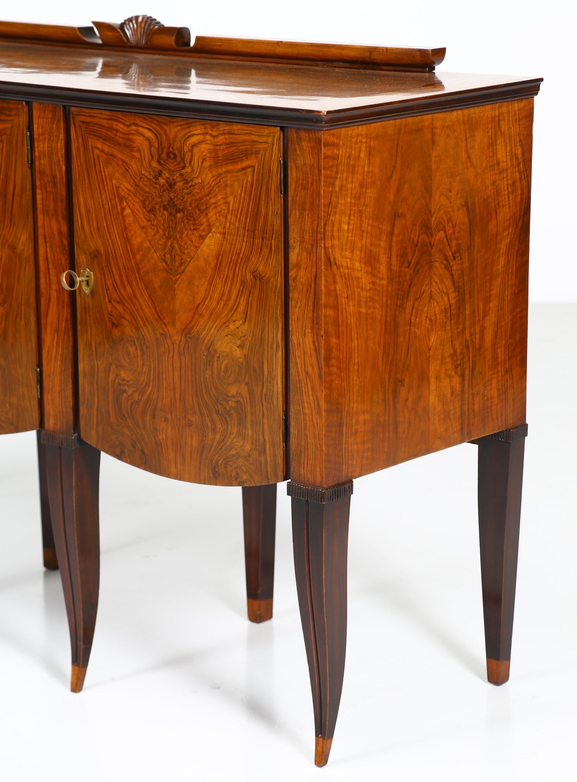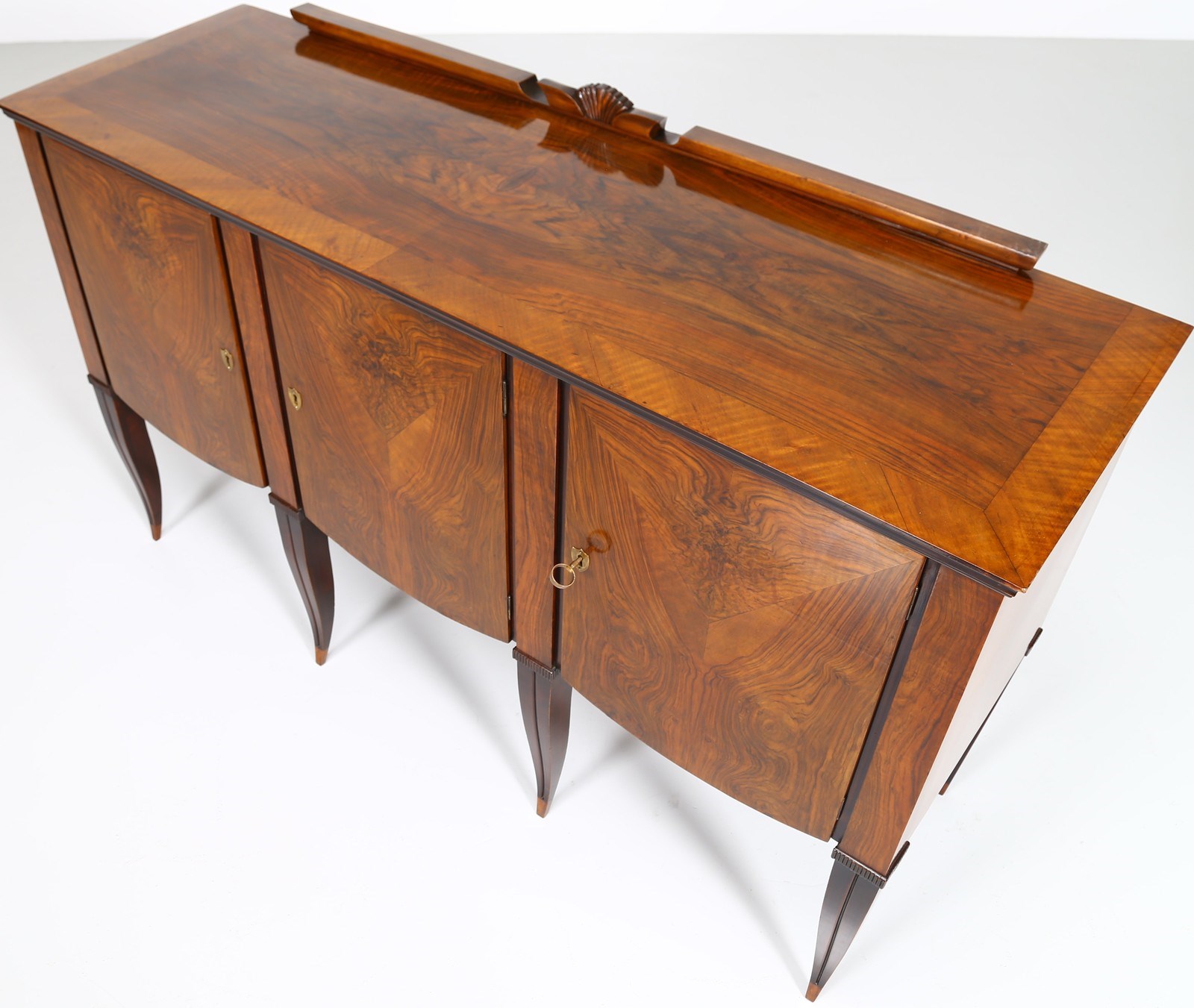 GIO PONTI - EMLIO LANCIA Credenza. Legno di noce. Cm 163,50 x 105,00 x 52,00. Importante credenza in legno di noce con dettagli delle maniglie e serrature in ottone, anni 40.