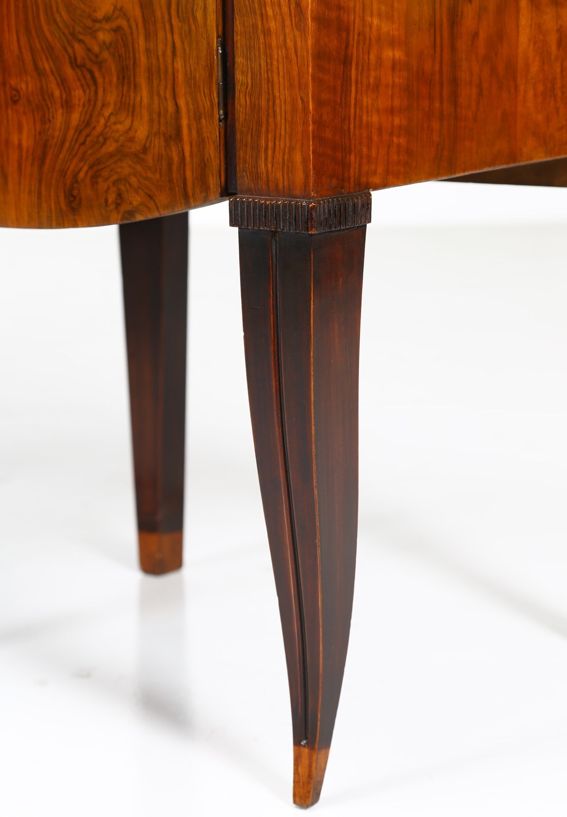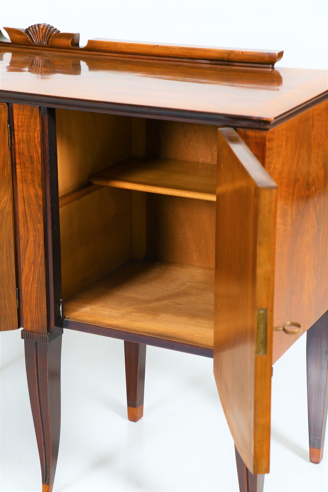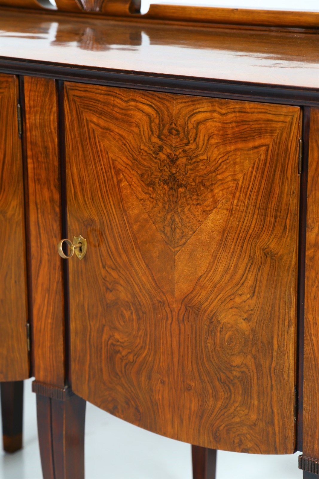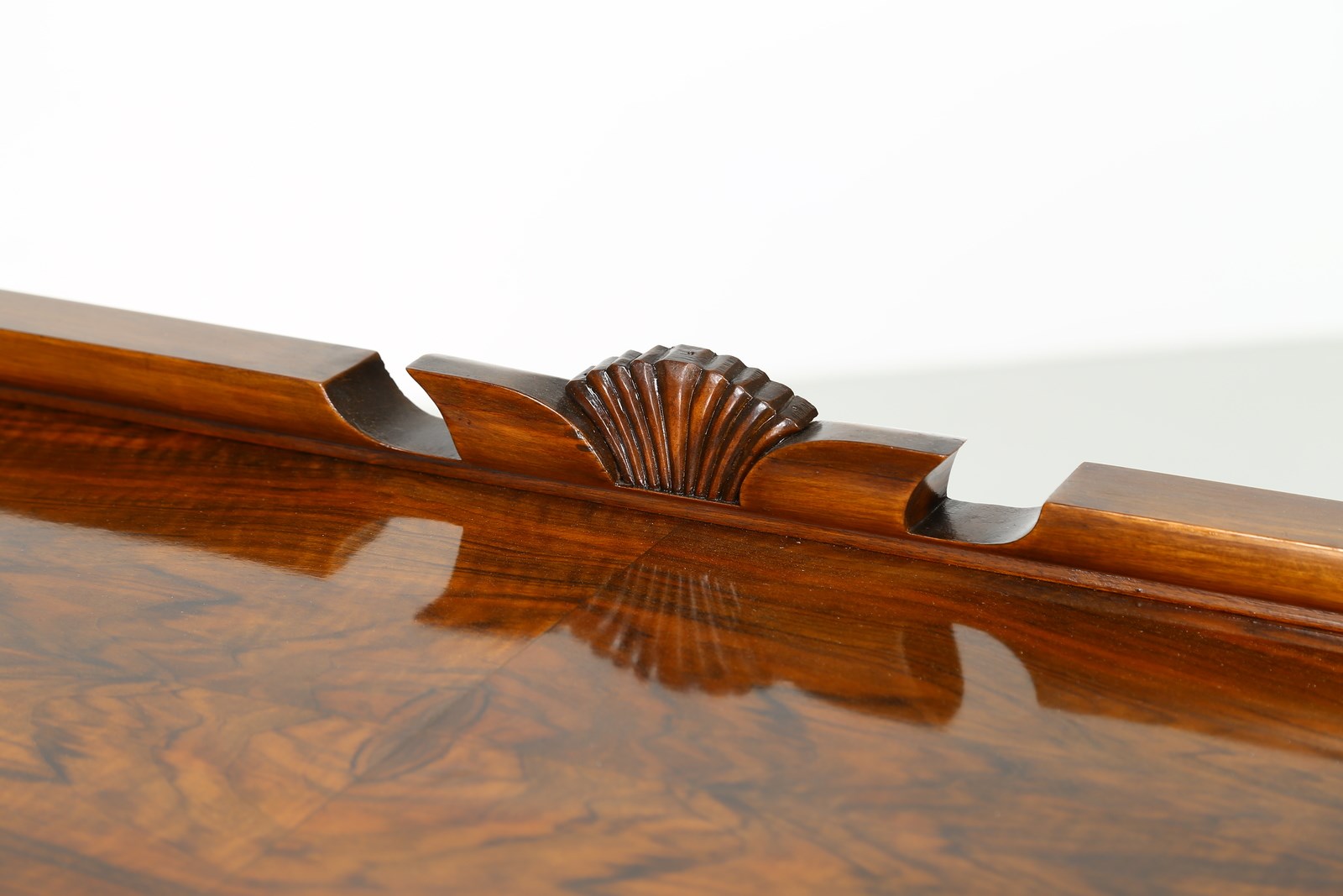 GIO PONTI - EMLIO LANCIA Credenza. Legno di noce. Cm 163,50 x 105,00 x 52,00. Importante credenza in legno di noce con dettagli delle maniglie e serrature in ottone, anni 40.