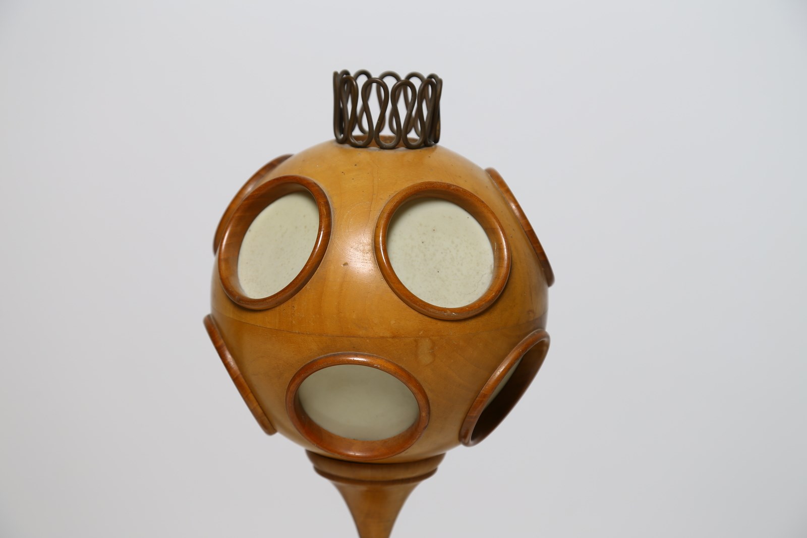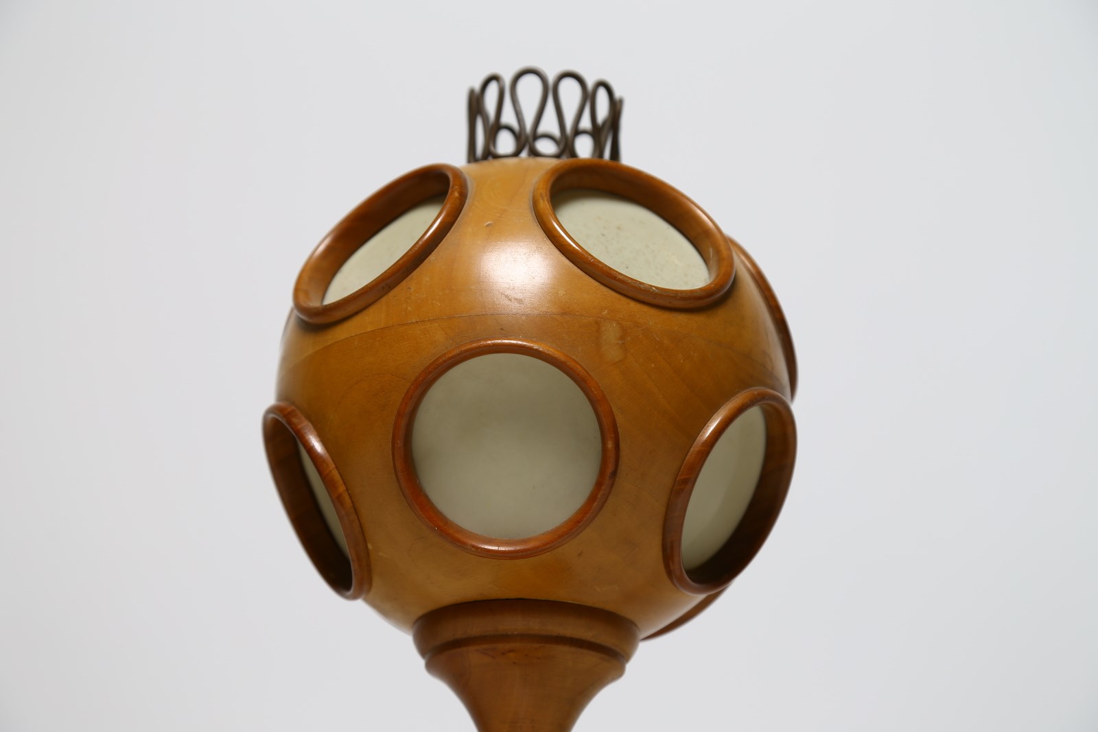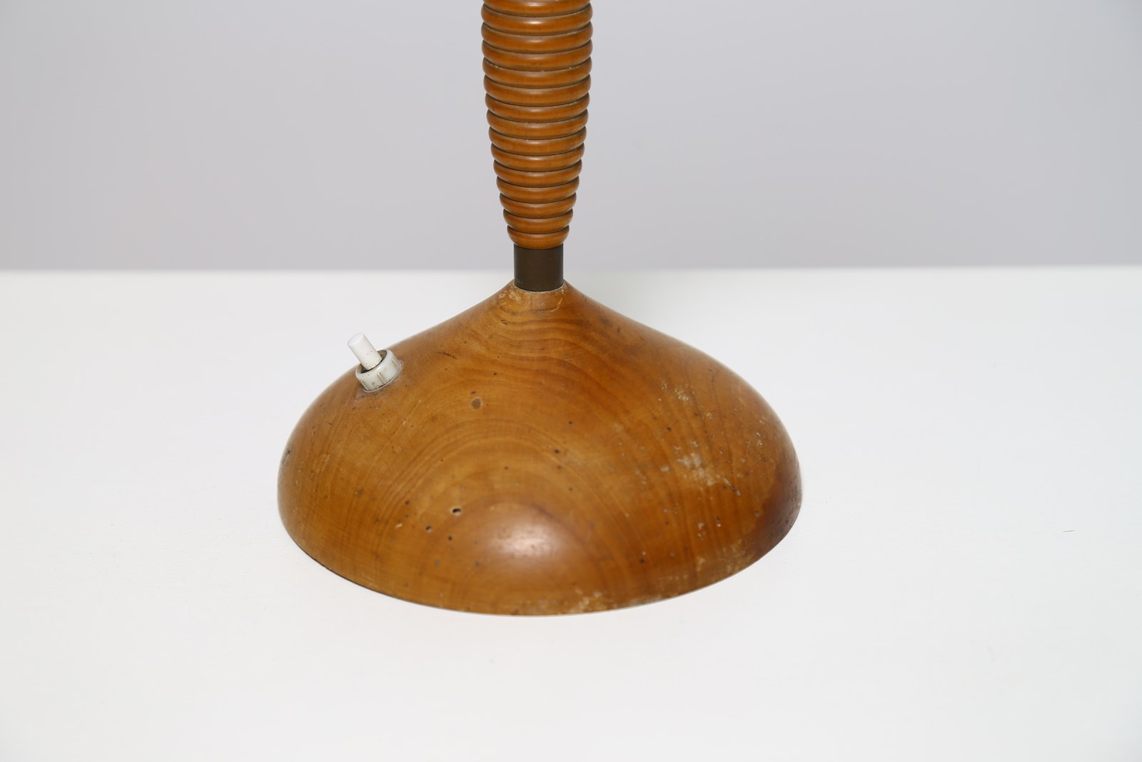 LACCA CESARE Lampada da tavolo. Legno e ottone. Cm 18,00 x 44,50 x 18,00. Lampada da tavolo in legno e ottone, dettagli in cellulosa, rara lampada edita in pochissimi esemplari, proveniente dalla villa di Garbagnate milanese di un dirigente di Casa e Giardino. Anni 40.