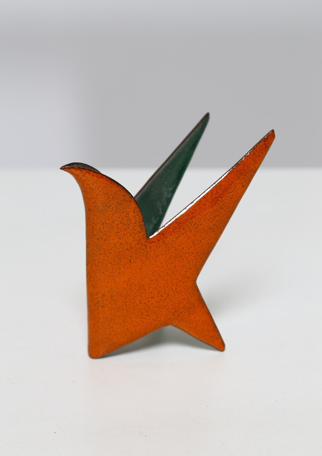 PONTI GIO (1891 - 1979) Uccellino. Rame smaltato. Cm 12,00 x 12,00 x 6,00. Uccellino eseguito da Paolo de Poli su disegno di Gio Ponti, rame smaltato, anni 50. Presenta etichetta "SMALTI DE POLI"