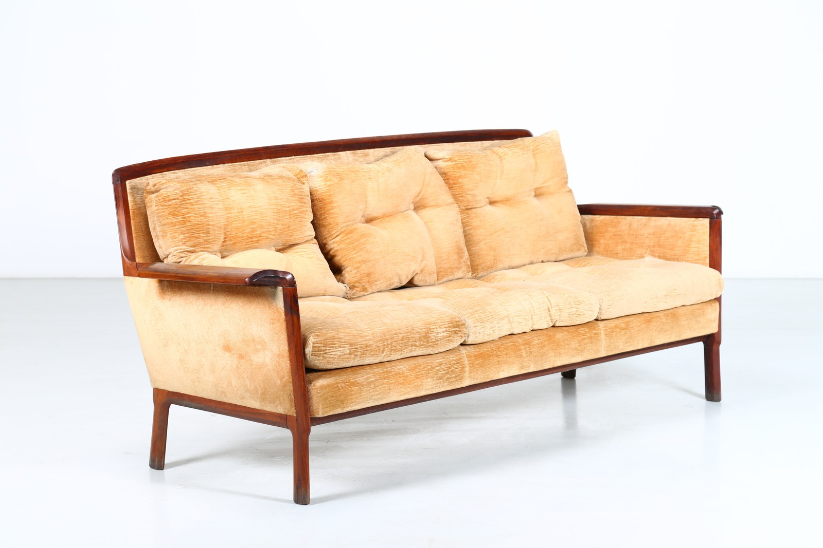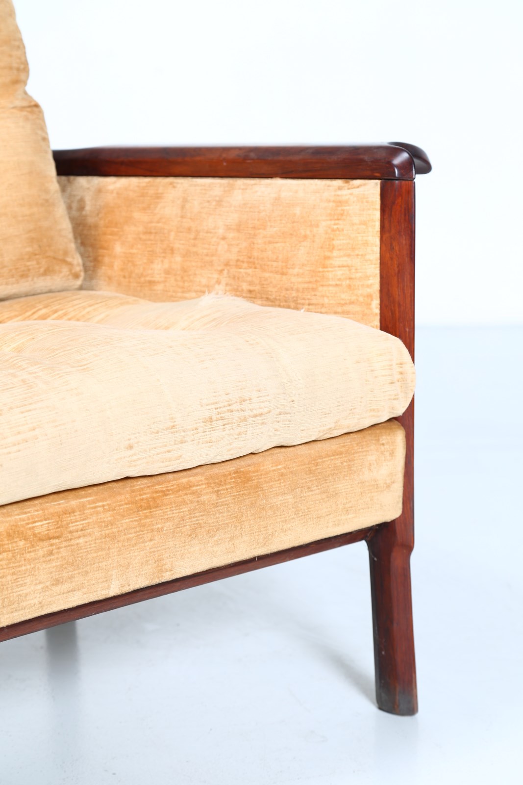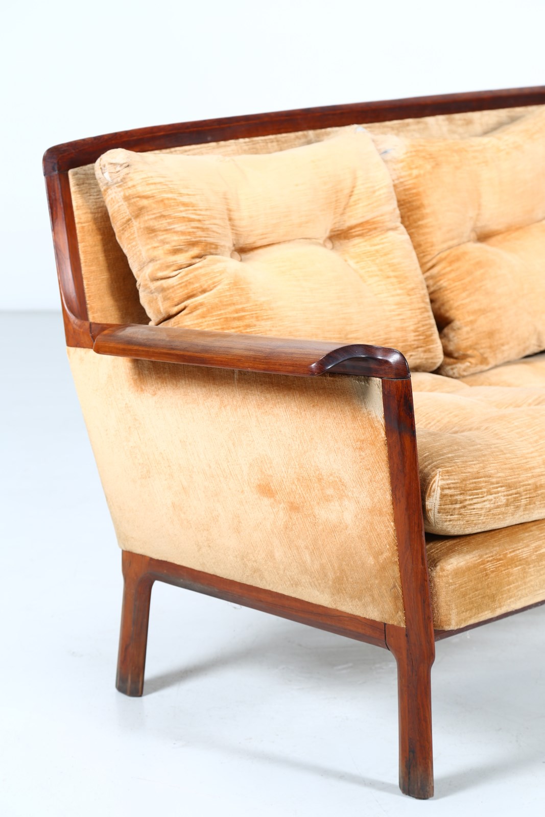 SCREMIN LUIGI (1896 - 1983) Attrib. Divano. Legno di palissandro e tessuto. Cm 200,00 x 83,00 x 82,00. Divano con intelaiatura in legno di palissandro, imbottitura e rivestimento in tessuto; anni 40.