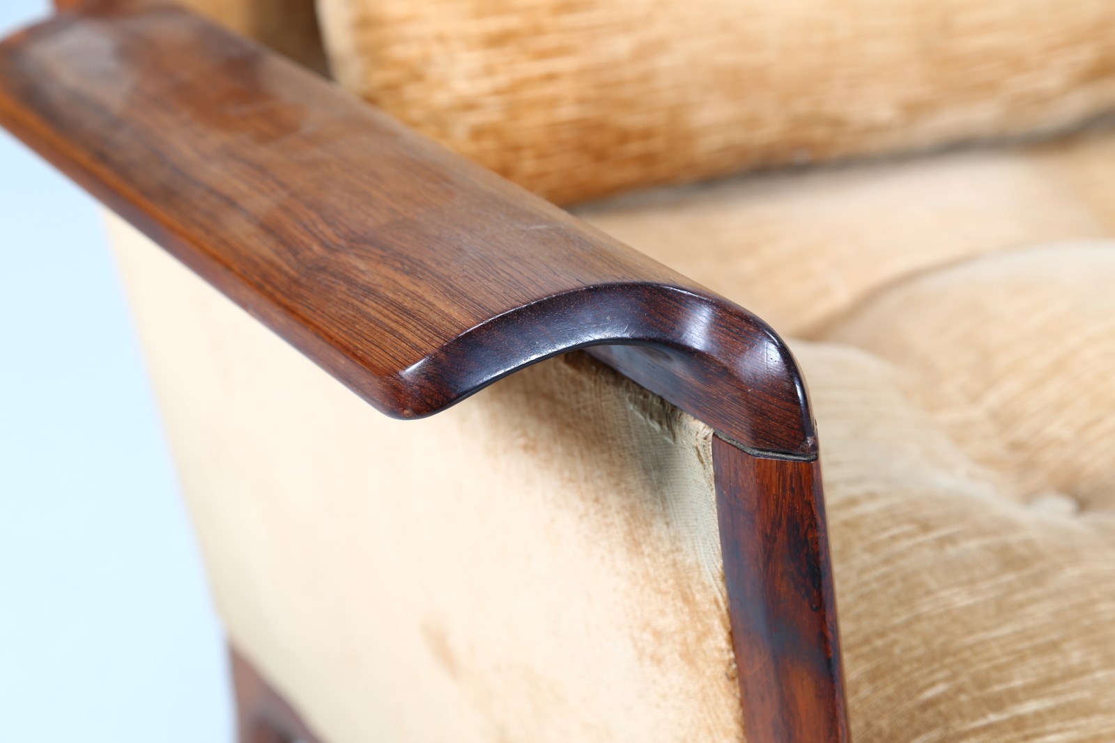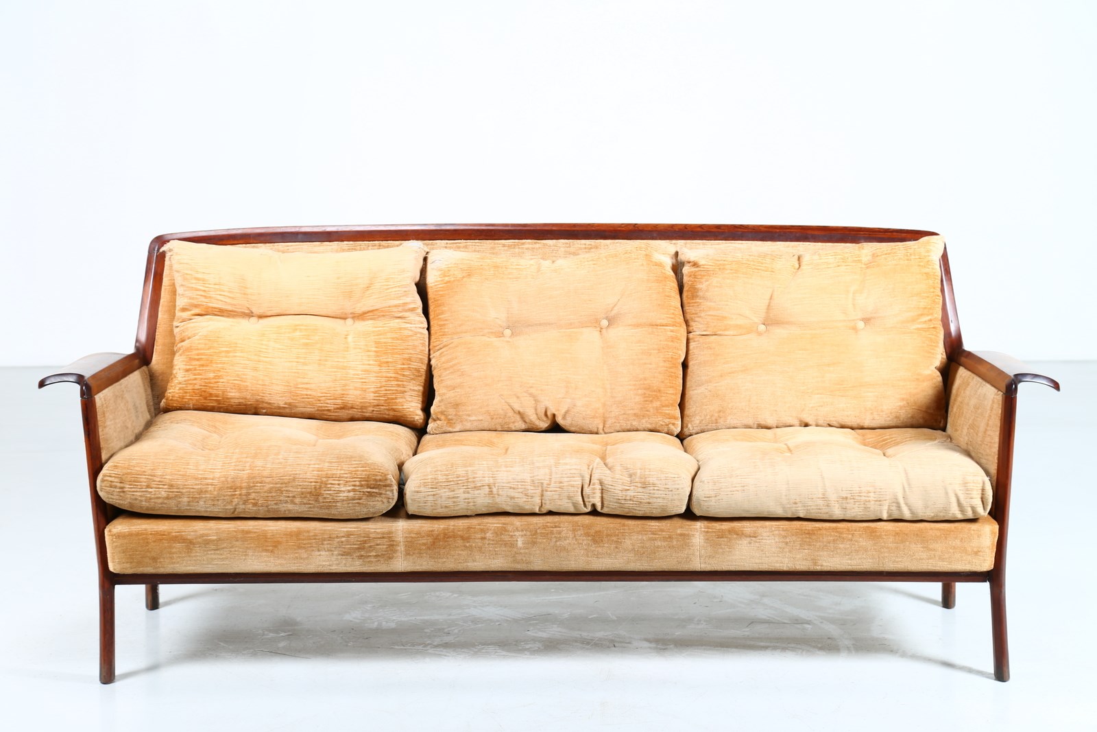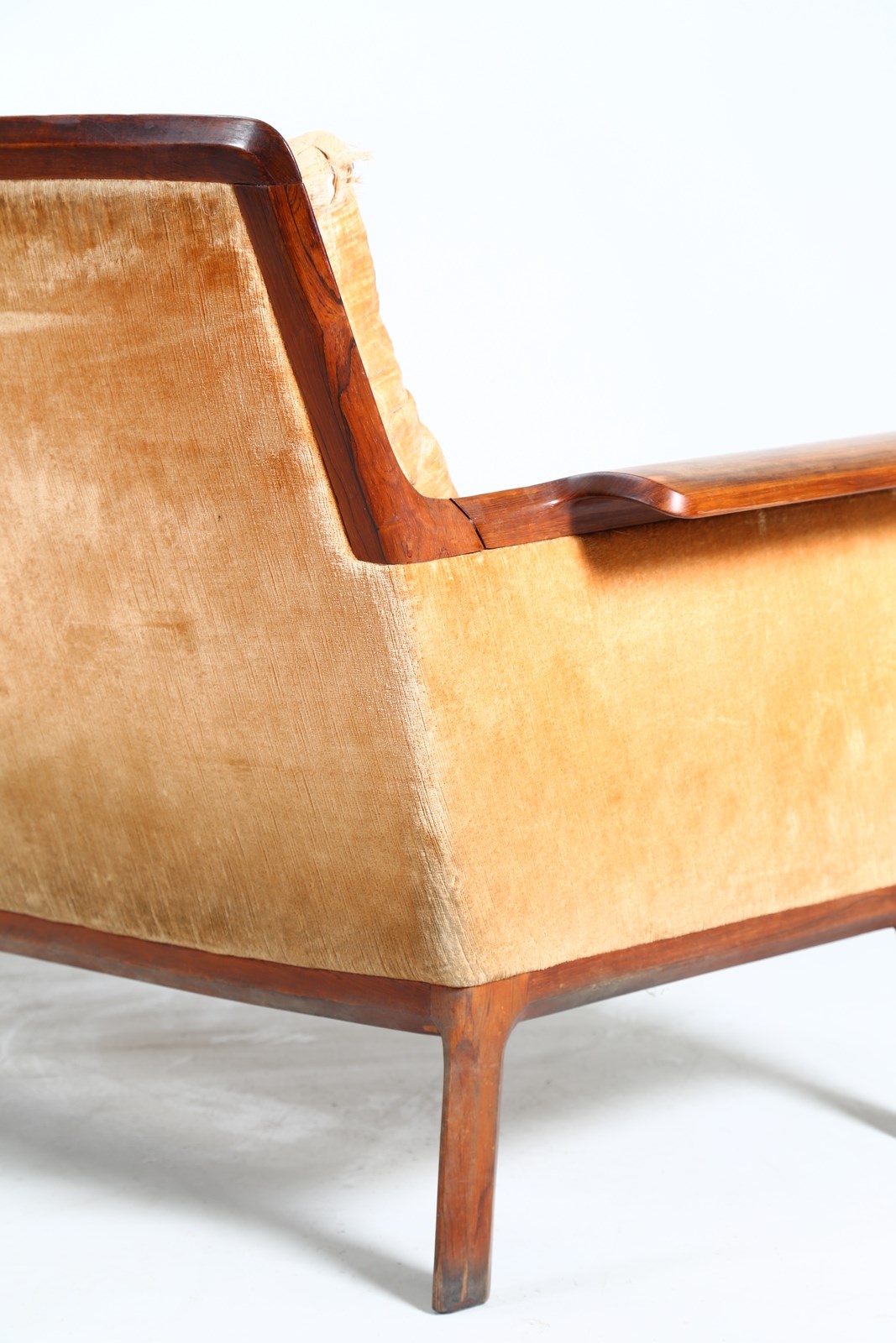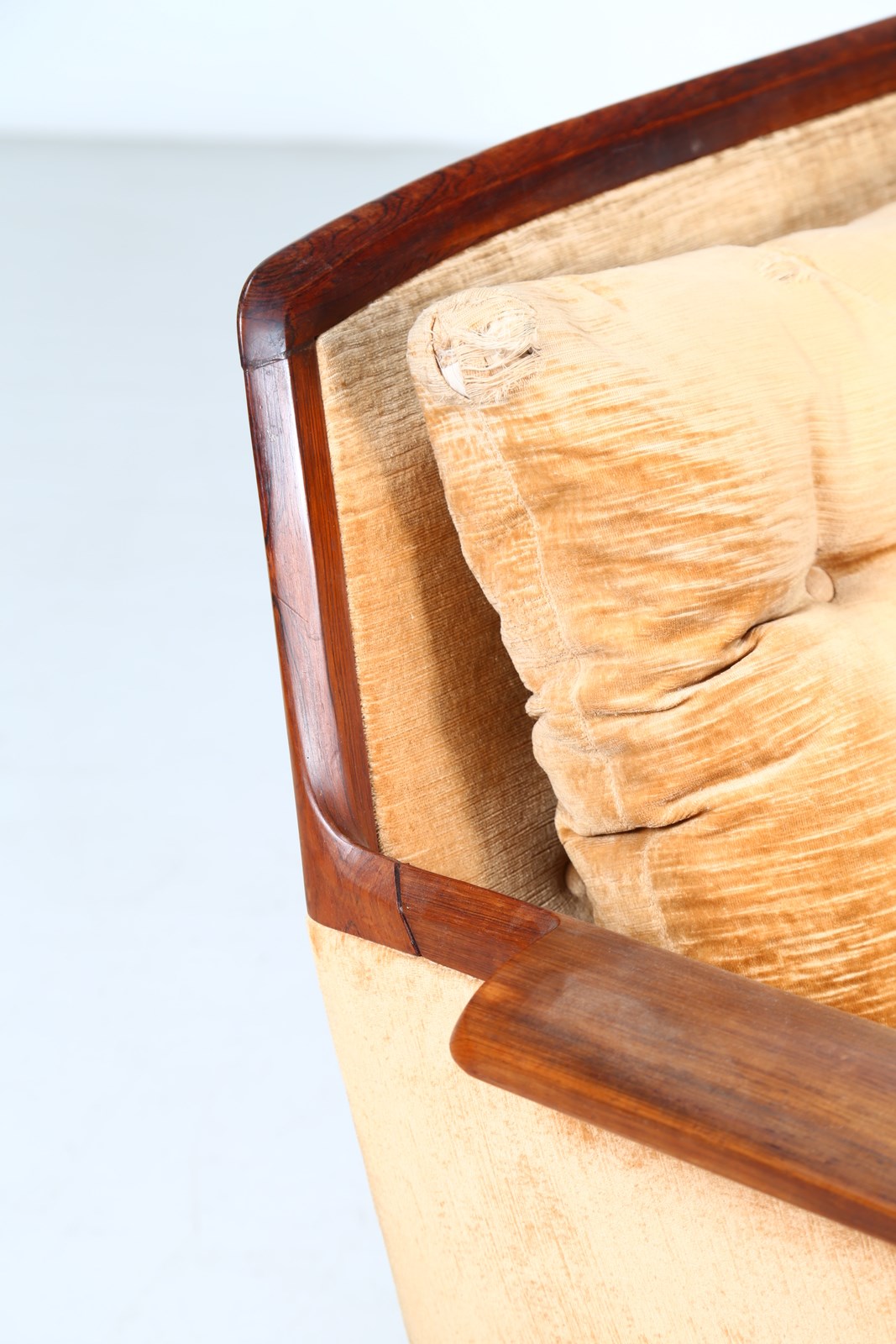 SCREMIN LUIGI (1896 - 1983) Attrib. Divano. Legno di palissandro e tessuto. Cm 200,00 x 83,00 x 82,00. Divano con intelaiatura in legno di palissandro, imbottitura e rivestimento in tessuto; anni 40.