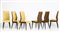 BEGA MELCHIORRE (1898 - 1976) Sei sedie. Legno e tessuto. Cm 44,50 x 108,00 x 54,00. Struttura in legno ebanizzato, dettagli in ottone, imbottitura e rivestimento in tessuto, anni 50.