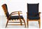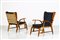 BEGA MELCHIORRE (1898 - 1976) Coppia di poltrone. Legno e tessuto. Cm 62,00 x 99,00 x 104,00. Coppia di poltrone in legno di noce, rafia intrecciata e tessuto imbottito, anni 30. Pubblicazioni: Domus, n. 164, agosto 1941, copertina - Domus, n. 165, settembre 1941, servizio su Casa Bega, p. 16-17-18-19 - Stile, Garzanti Editore, n. 23, novembre 1942, p. 17