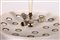 LUMEN MILANO Lampada da soffitto. Metallo laccato, ottone, vetro. Cm 49,00 x 62,00 x 49,00. Metallo laccato, ottone e vetri satinati, anni 50.
