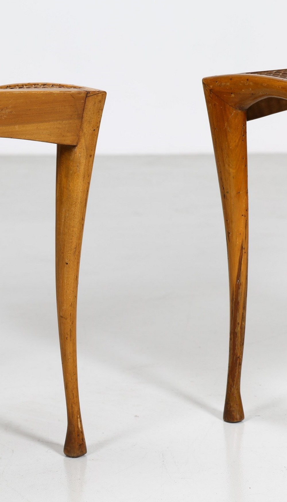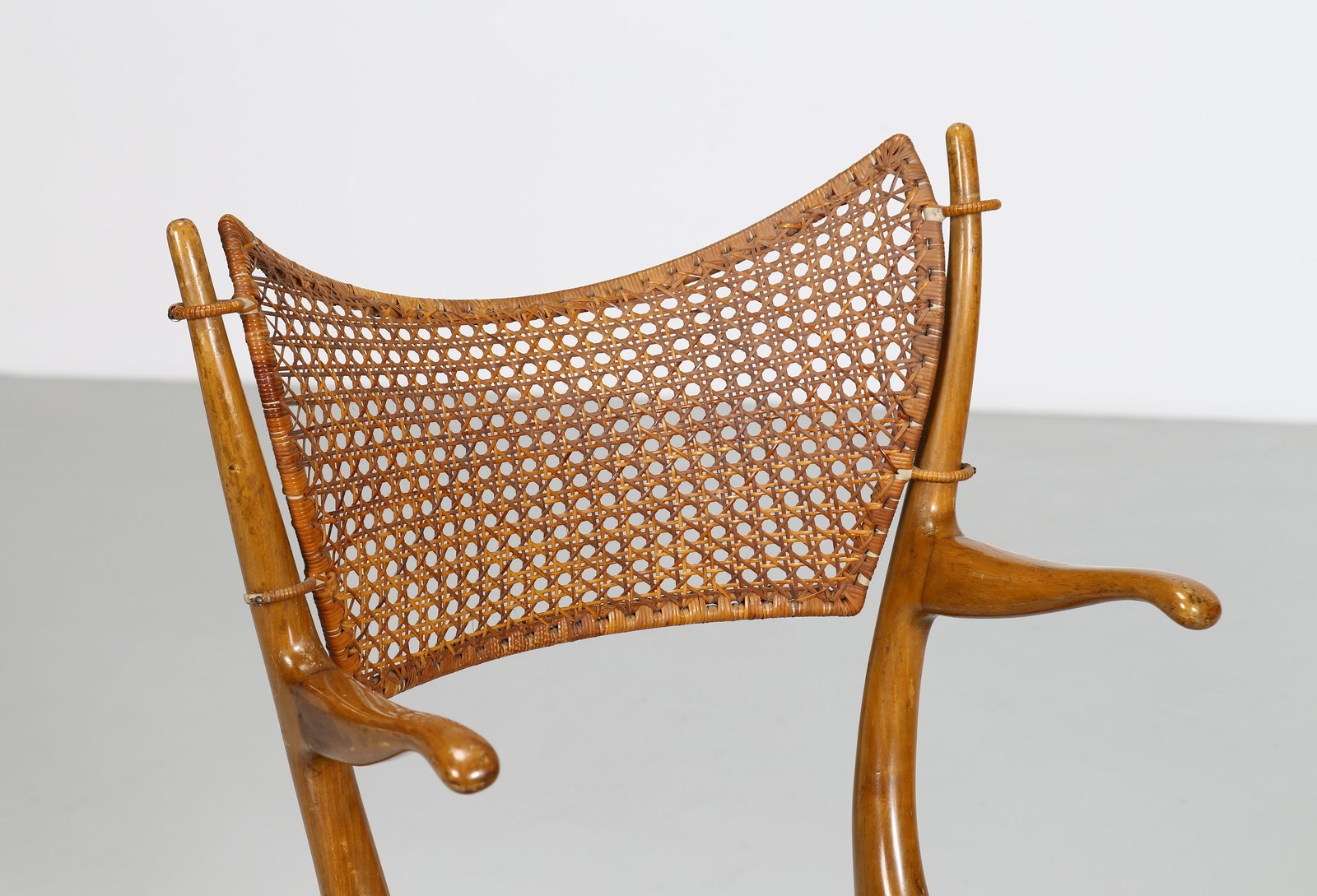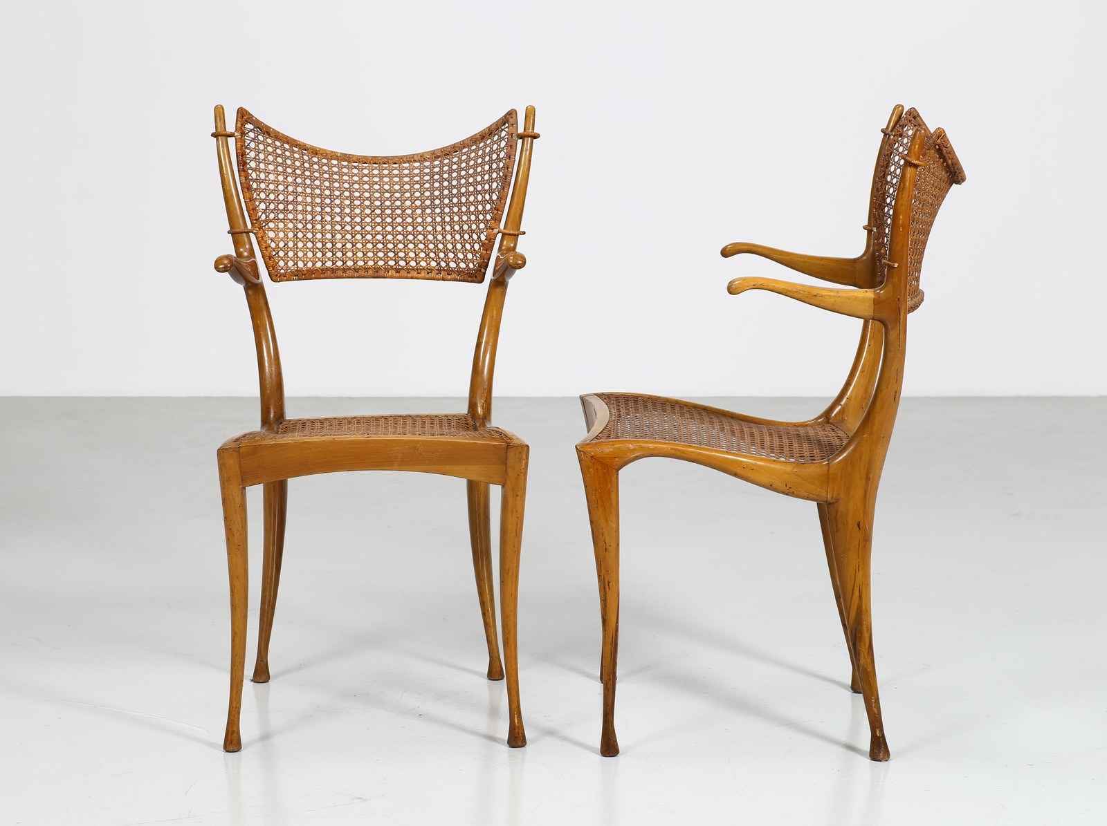 JOHNSON DAN (1918 - 1979) Coppia di poltrone. Legno e paglia di Vienna. Cm 46,00 x 96,00 x 50,00. Coppia di poltrone mod Gazzelle, fine anni 50. Struttura in legno e paglia di Vienna.