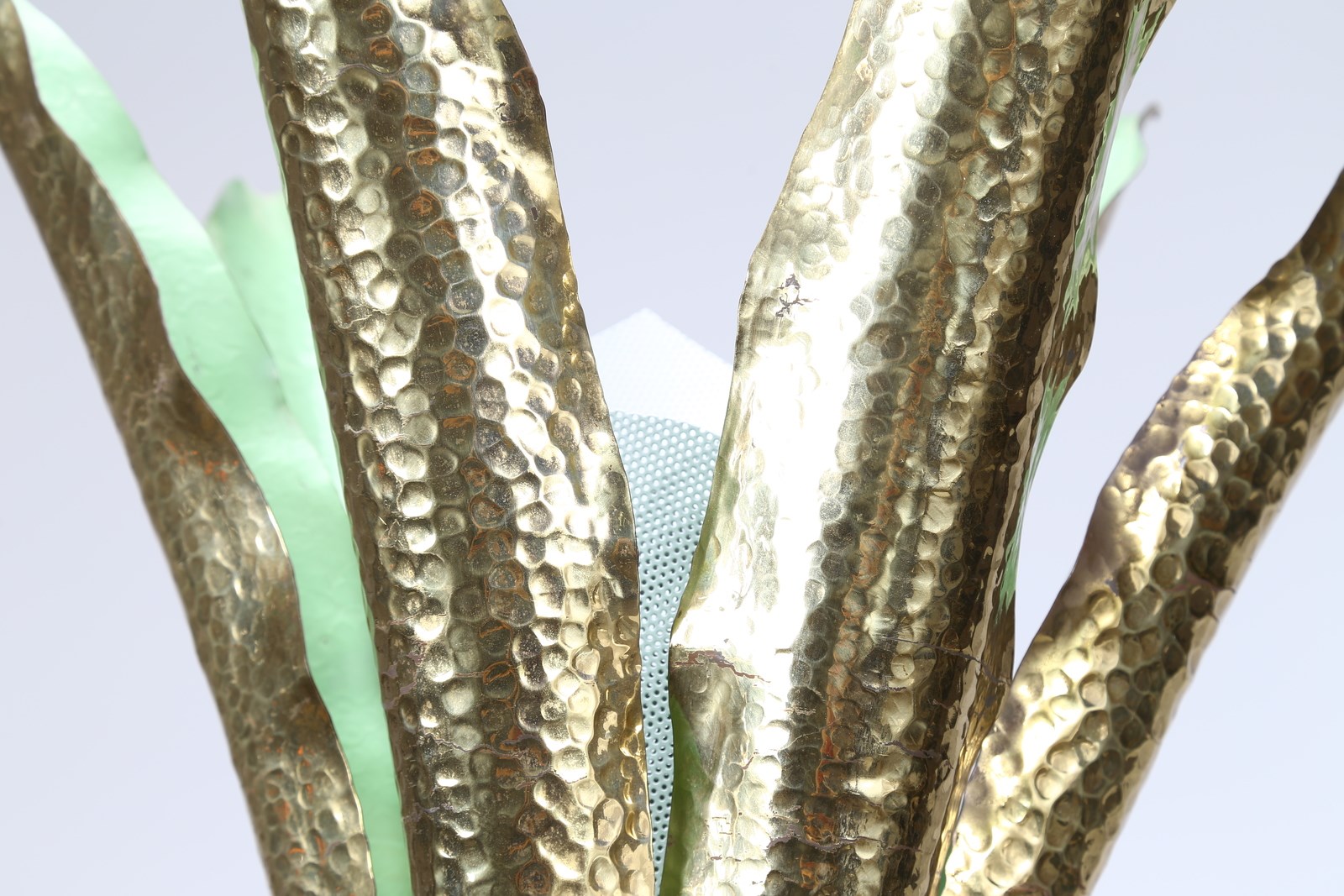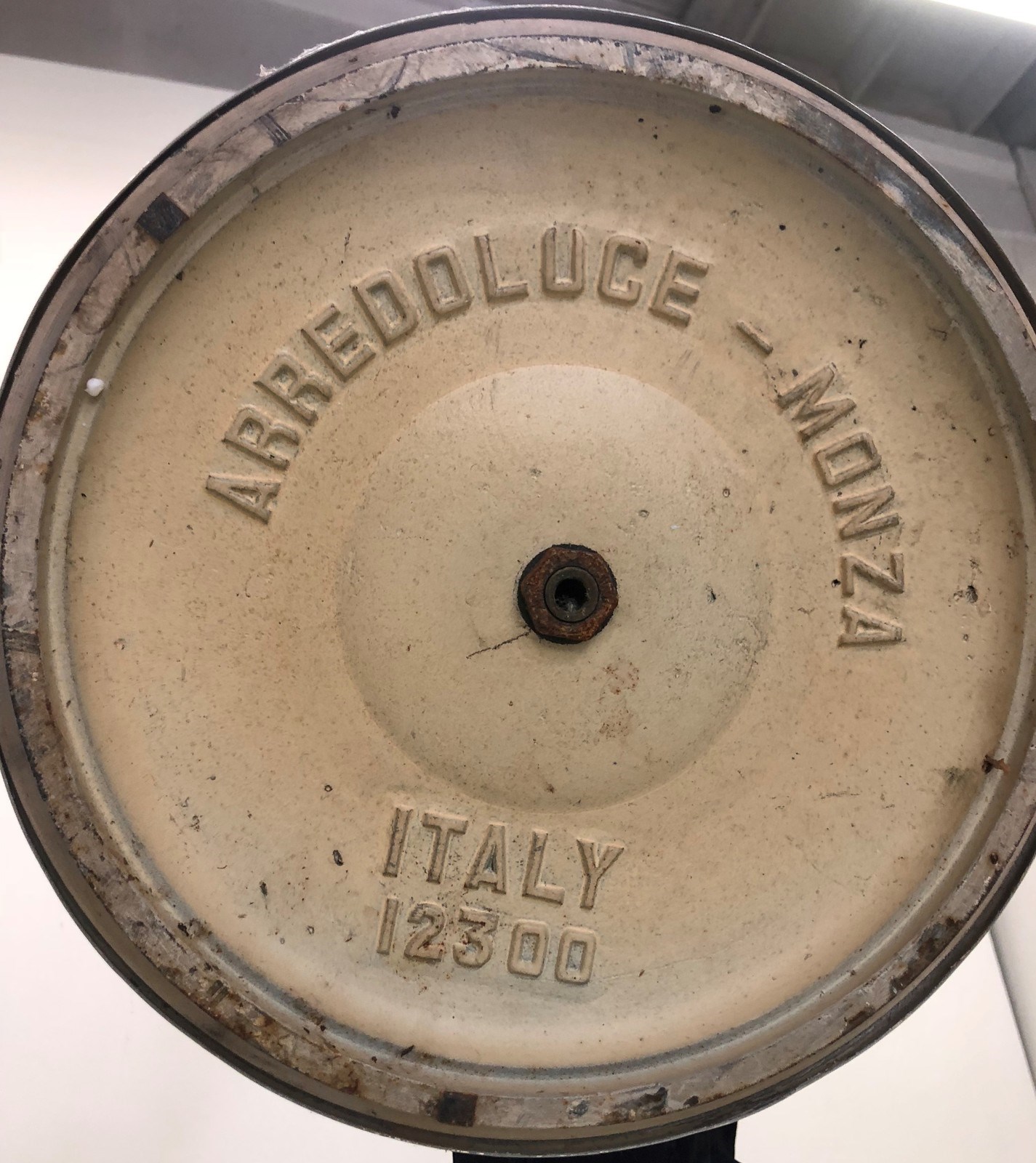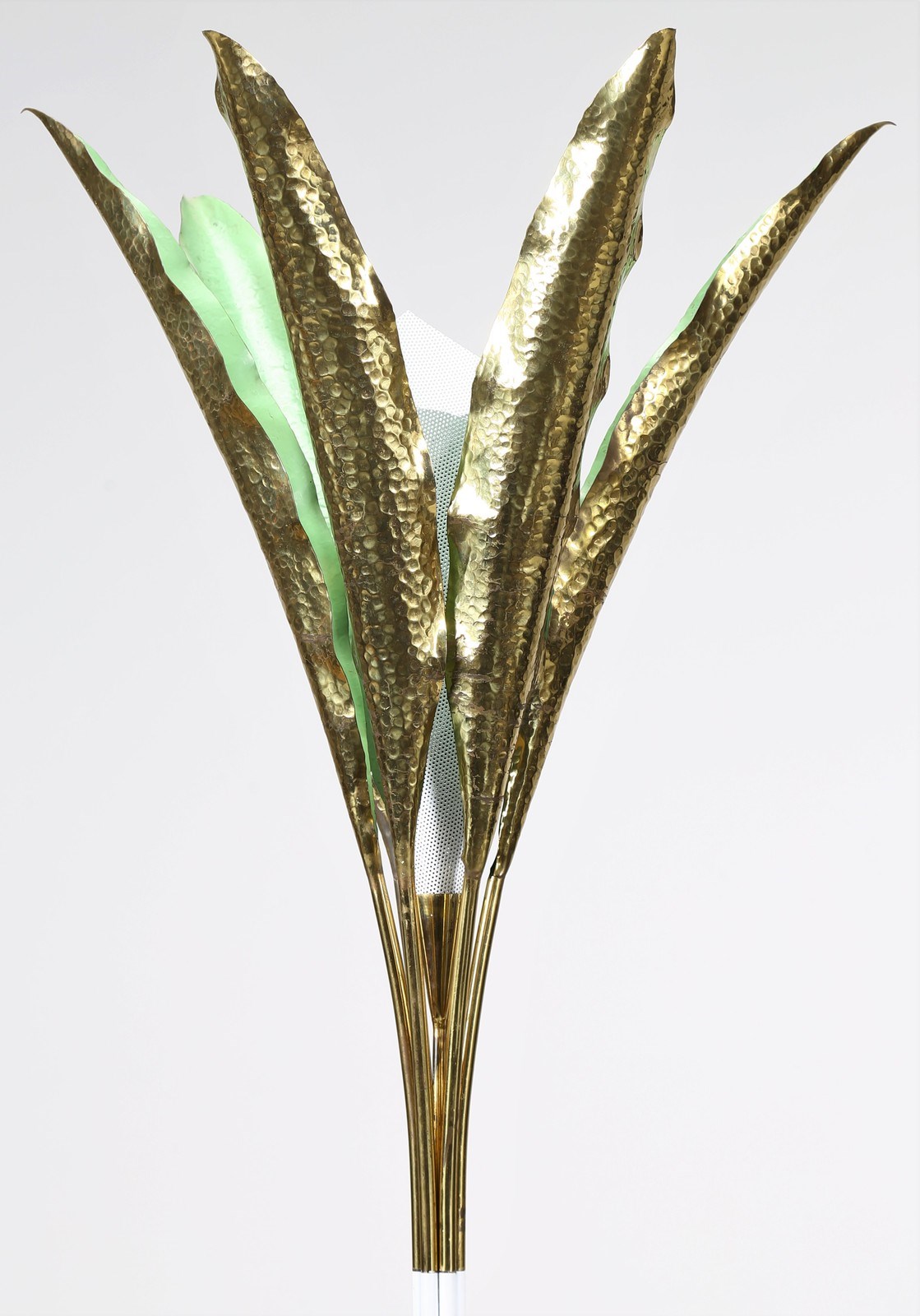 LELII ANGELO (1911 - 1979) Lampada da terra. 1951. Metallo laccato e ottone. Cm 80,00 x 227,00 x 80,00. Modello 12383, per Arredoluce, 1951 circa. Base in ghisa rivestita in alluminio verniciato, struttura in ottone verniciato e lucido, schermi in ottone martellato e verniciato, diffusore in rete metallica. Presenta marchio alla base: Arredoluce - Monza, Italy 12300 Pubblicazioni: Domus, n.293, giugno 1953, p. 20 (Pagina pubblicitaria) - Arredoluce, Catalogo ragionato 1943-1987, a cura di A. Pansera, A. Padoan, A. Palmaghini, Silvana Editoriale, Cinisello Balsamo, 2018, p.283