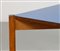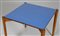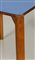 ALCHINI GIULIO (1926 - 1958) Tavolino. Legno di faggio. Cm 85,00 x 77,50 x 85,00. Tavolino in legno di faggio con piano in formica blu, anni 50.Il forte interesse per la fisicità di una forma nello spazio porta Giulio Alchini ad occuparsi di architettura, di design; è sempre di questi anni la vorace conoscenza delle opere dell'architetto, urbanista e pittore Le Corbusier. E' affascinato innanzitutto dell'approccio che il grande architetto ha con le forme e con gli stili. Infatti non gli interessa la coerenze ideologica e meno ancora quella formale: partendo da un modulo elementare vi costruisce sopra un ambiente in cui scultura, scenografia, inconsio e irrazionalità ssi mescolano, si intrecciano continuamente diventando architettura del gesto e della materia. Tratto da: ALCHINI, a cura di Fiorenzo De Gasperi, La Bottega dell'arte, p.9