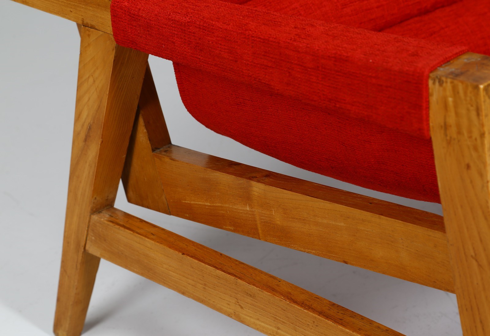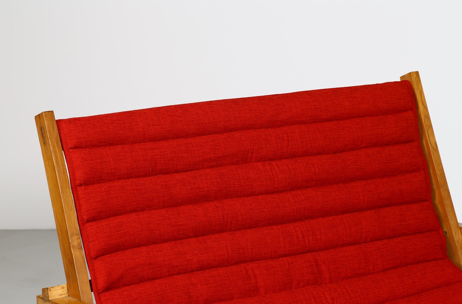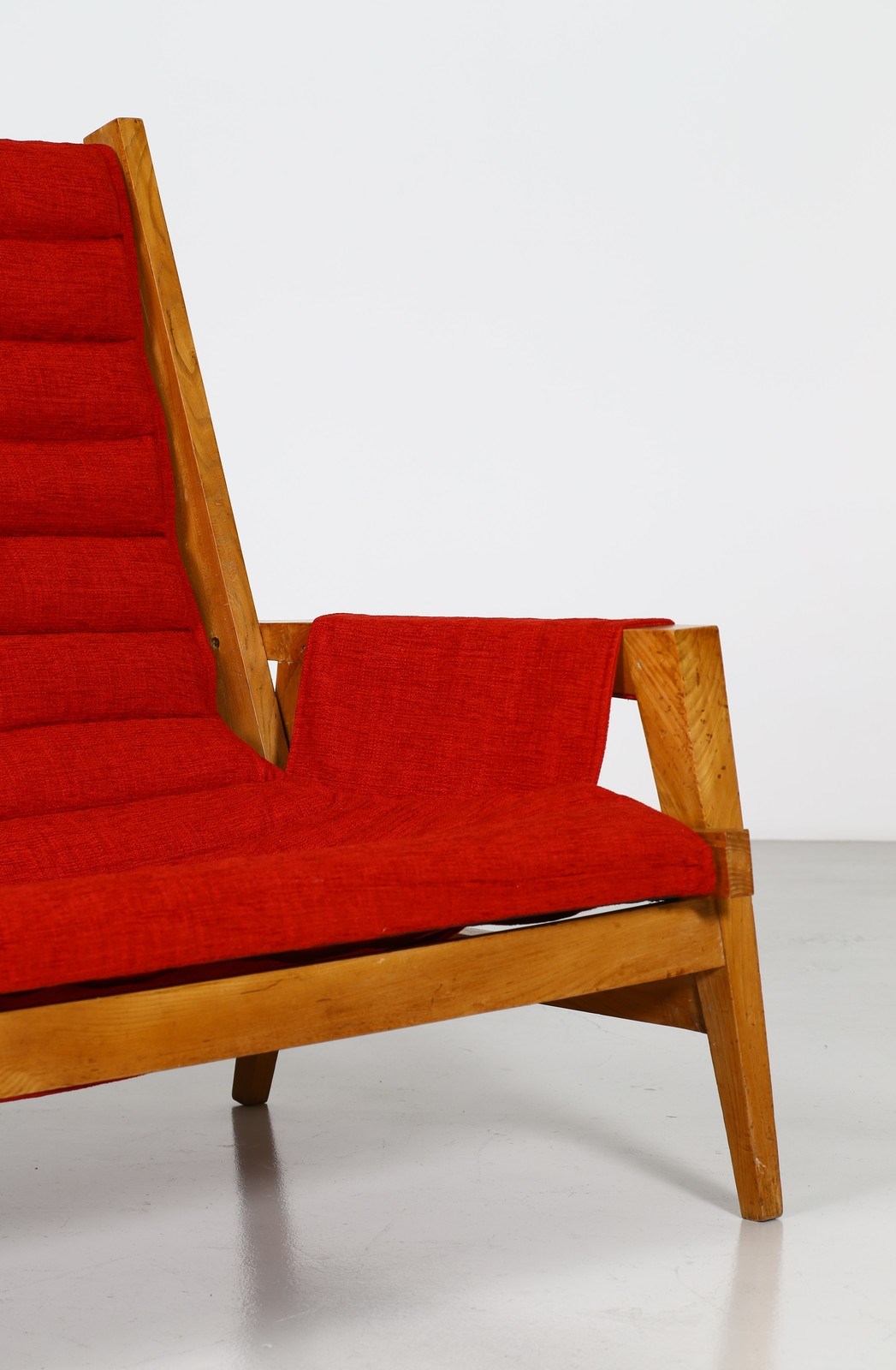 ALCHINI GIULIO (1926 - 1958) Divano. Legno di olmo. Cm 142,00 x 96,00 x 80,00. Divano in legno di olmo e tessuto, anni 50. Il forte interesse per la fisicità di una forma nello spazio porta Giulio Alchini ad occuparsi di architettura, di design; è sempre di questi anni la vorace conoscenza delle opere dell'architetto, urbanista e pittore Le Corbusier. E' affascinato innanzitutto dell'approccio che il grande architetto ha con le forme e con gli stili. Infatti non gli interessa la coerenze ideologica e meno ancora quella formale: partendo da un modulo elementare vi costruisce sopra un ambiente in cui scultura, scenografia, inconsio e irrazionalità ssi mescolano, si intrecciano continuamente diventando architettura del gesto e della materia. Tratto da: ALCHINI, a cura di Fiorenzo De Gasperi, La Bottega dell'arte, p.9