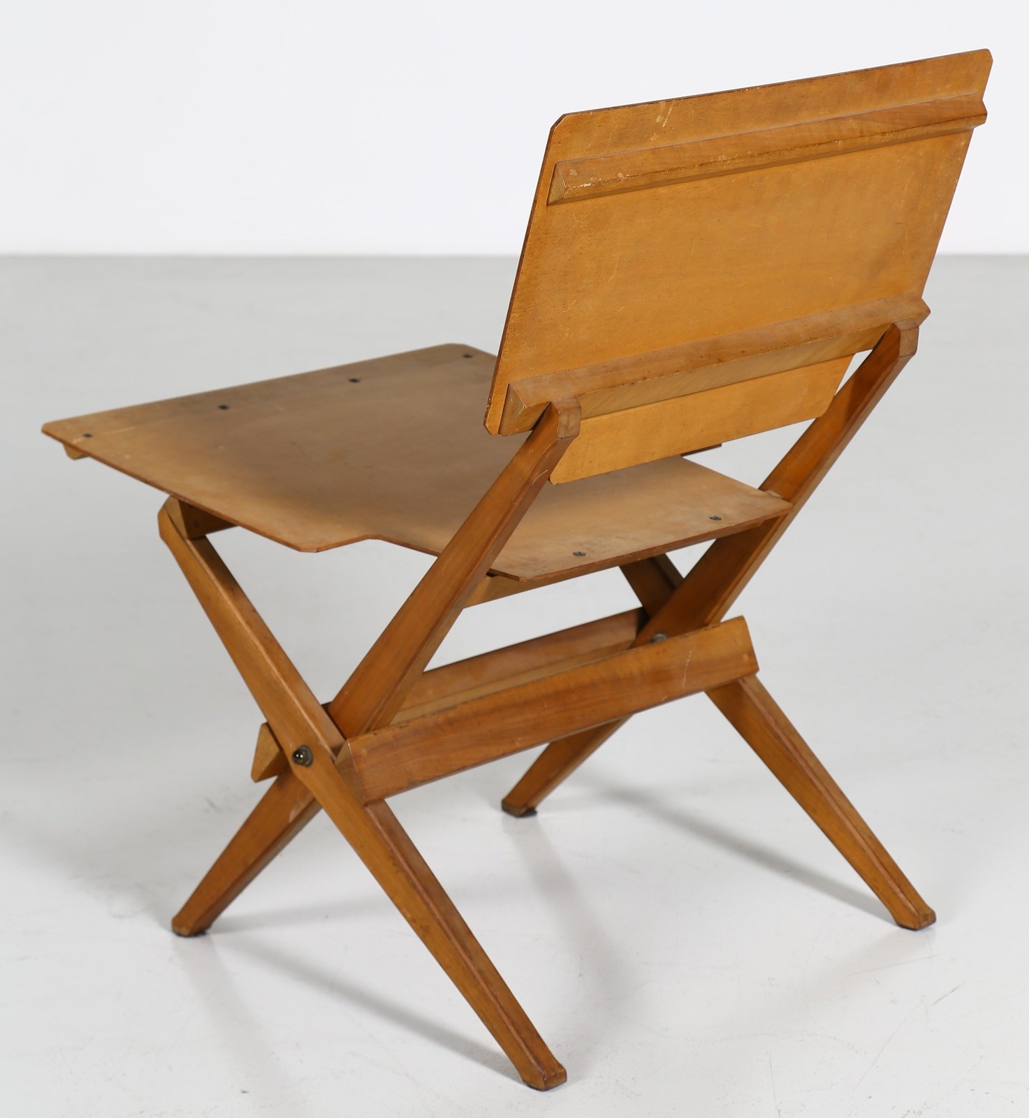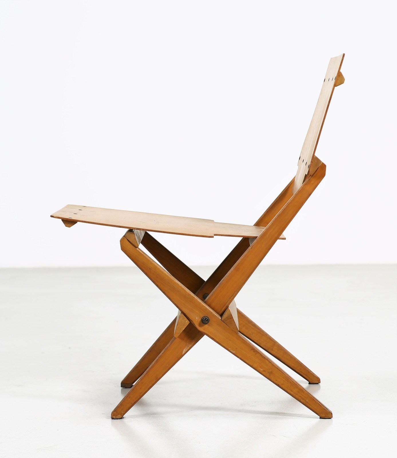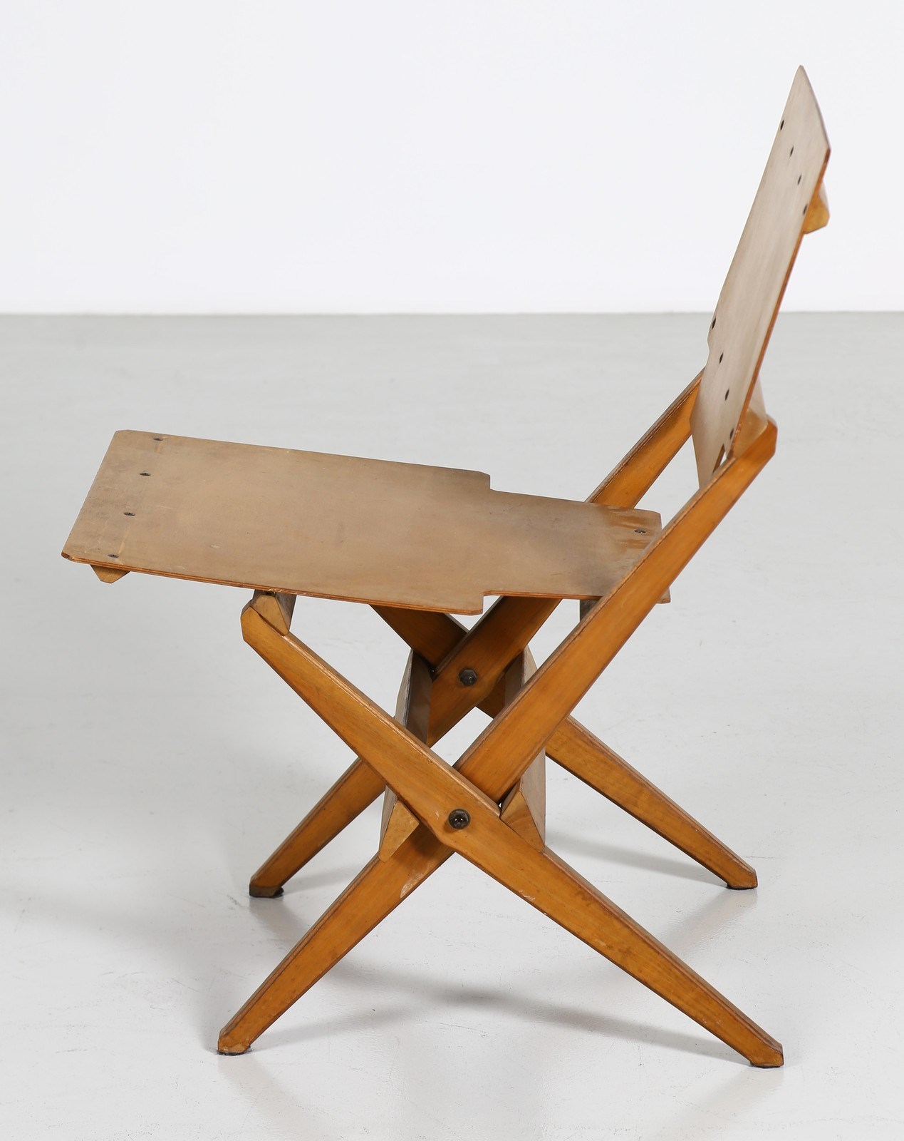 ALBINI FRANCO (1905 - 1977) Sedia. Legno. Cm 51,00 x 76,00 x 57,00. Sedia pieghevole per POGGI, 1952. Struttura in legno e compensato di noce. Pubblicazioni: Domus, n. 578, gennaio 1978, p. 80. Si ringrazia l'archivio Franco Albini (Milano) per la conferma dell'attribuzione a Franco Albini, su richiesta dell'acquirente l'archivio si rende disponibile a produrre il certificato di autenticità.