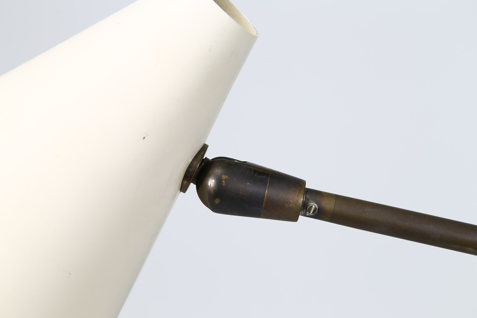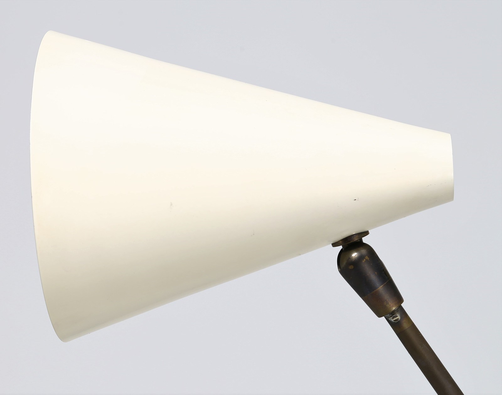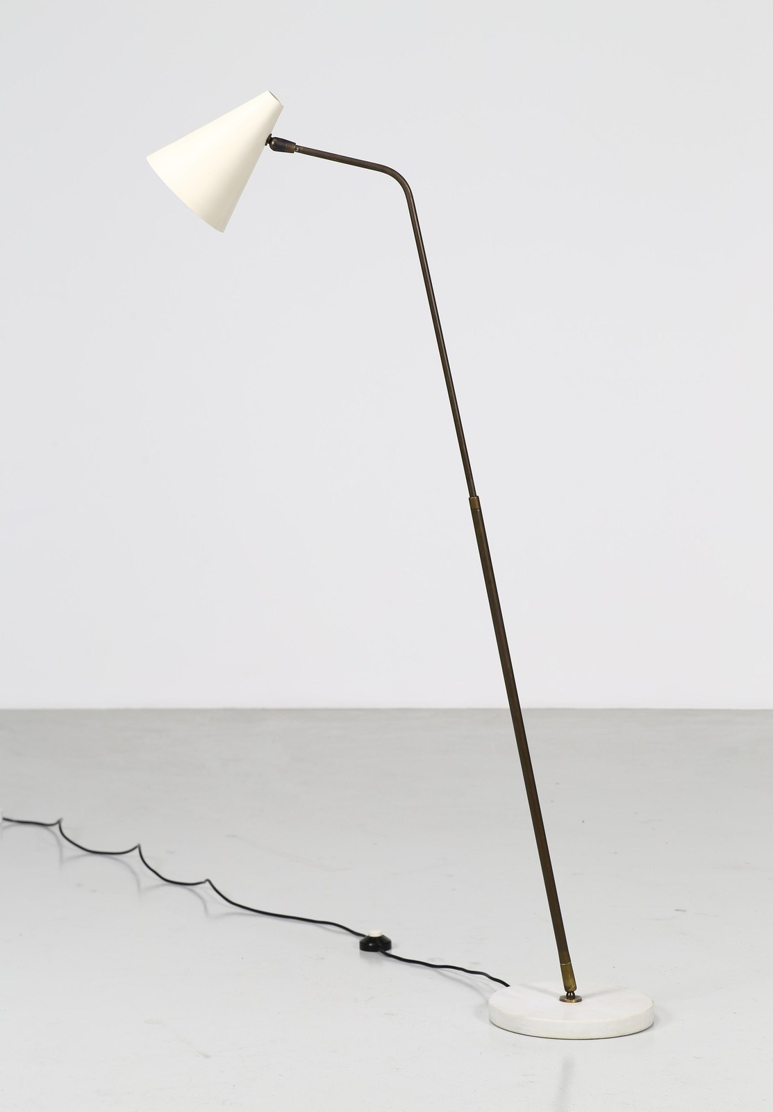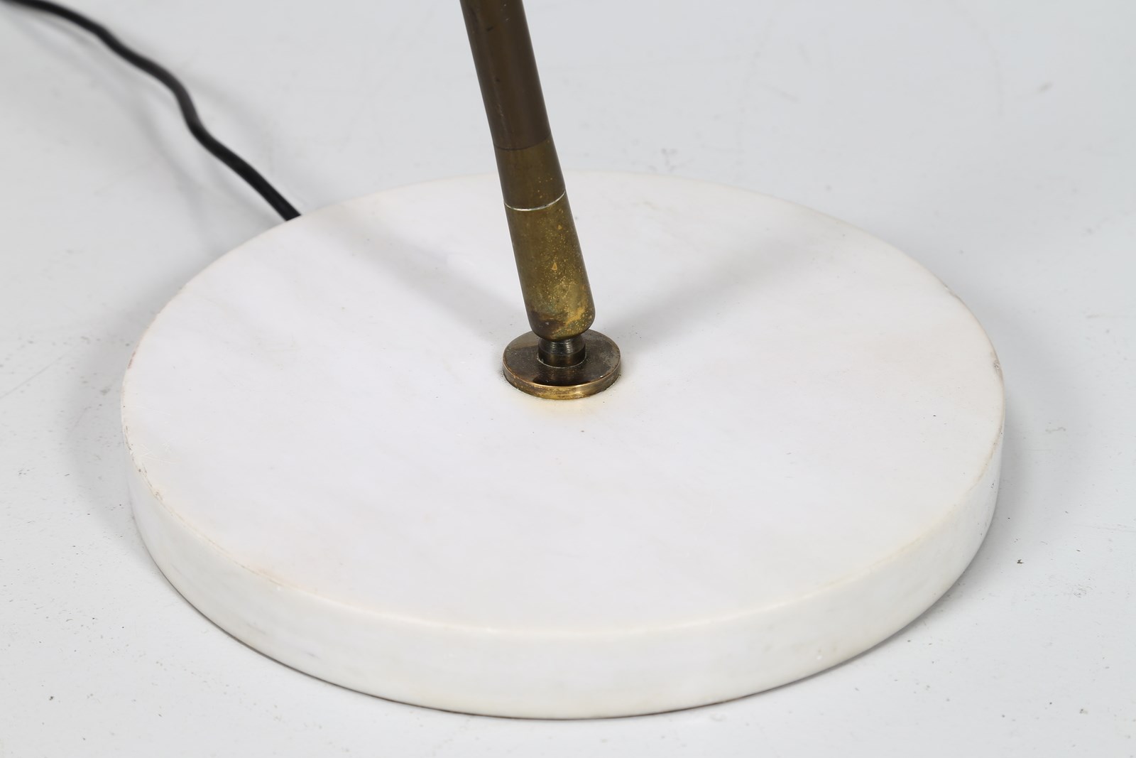 OSTUNI GIUSEPPE Lampada da terra. Marmo, ottone e alluminio verniciato.. Cm 73,00 x 156,00 x 28,00. Lampada da terra variante del mod. 331, Oluce anni '50. Marmo, ottone, alluminio verniciato.