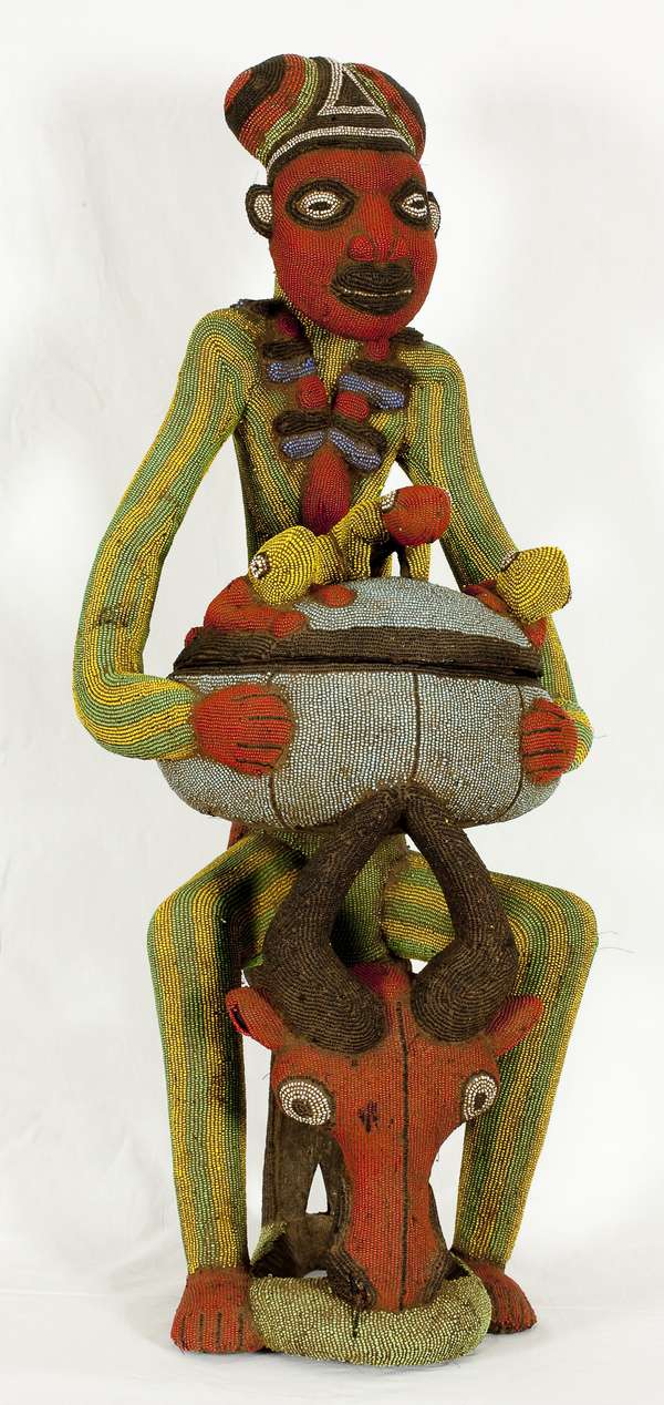 Artista del Camerun Statua a perline Bamileke scultura in legno e perline,...