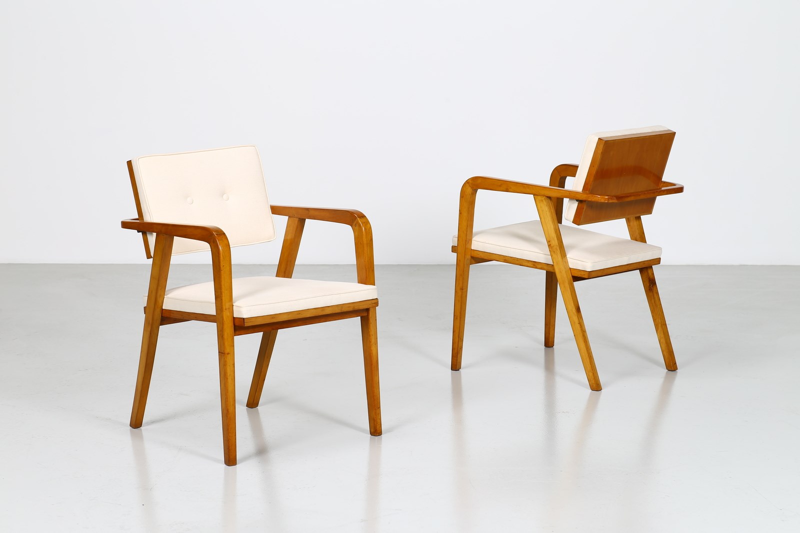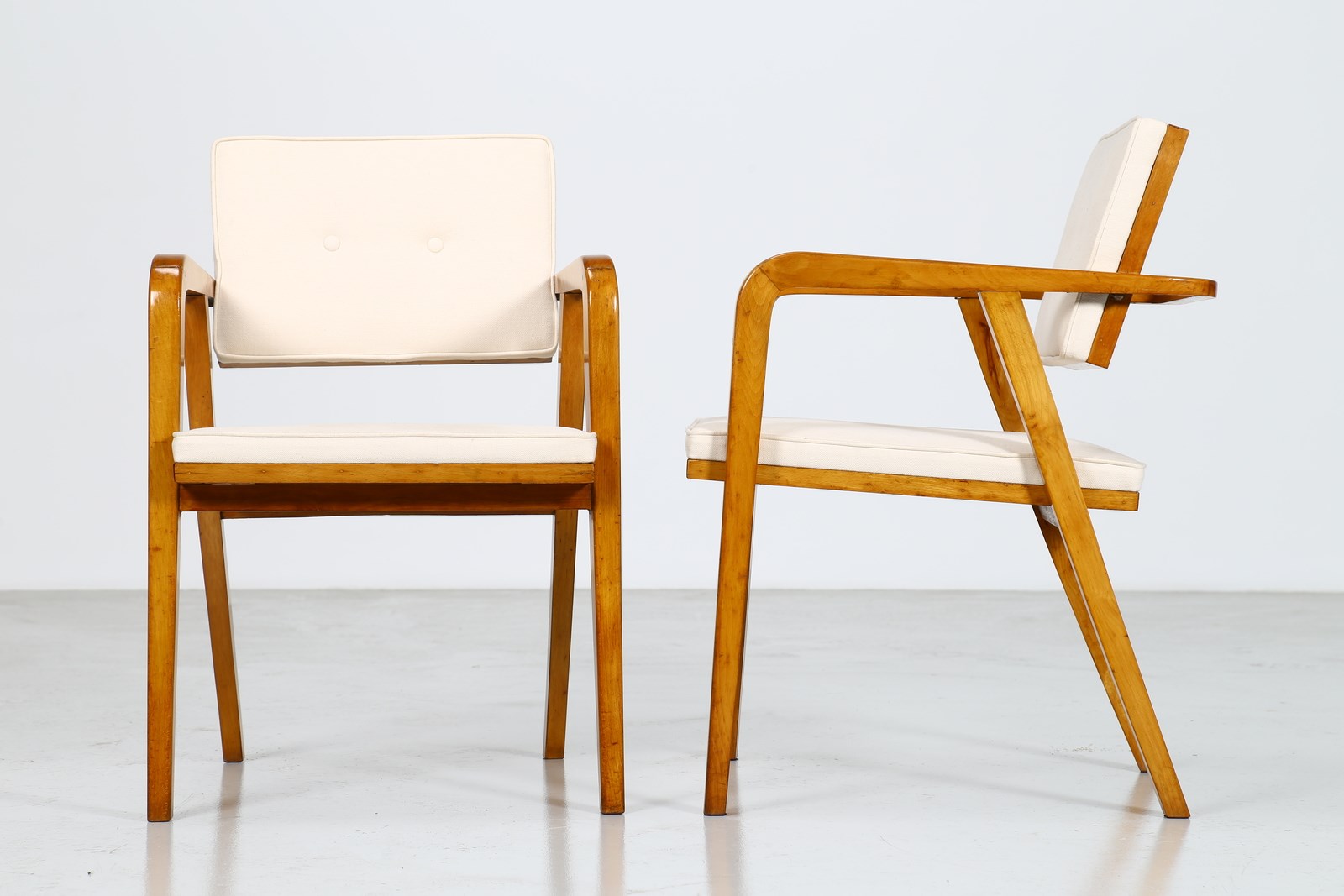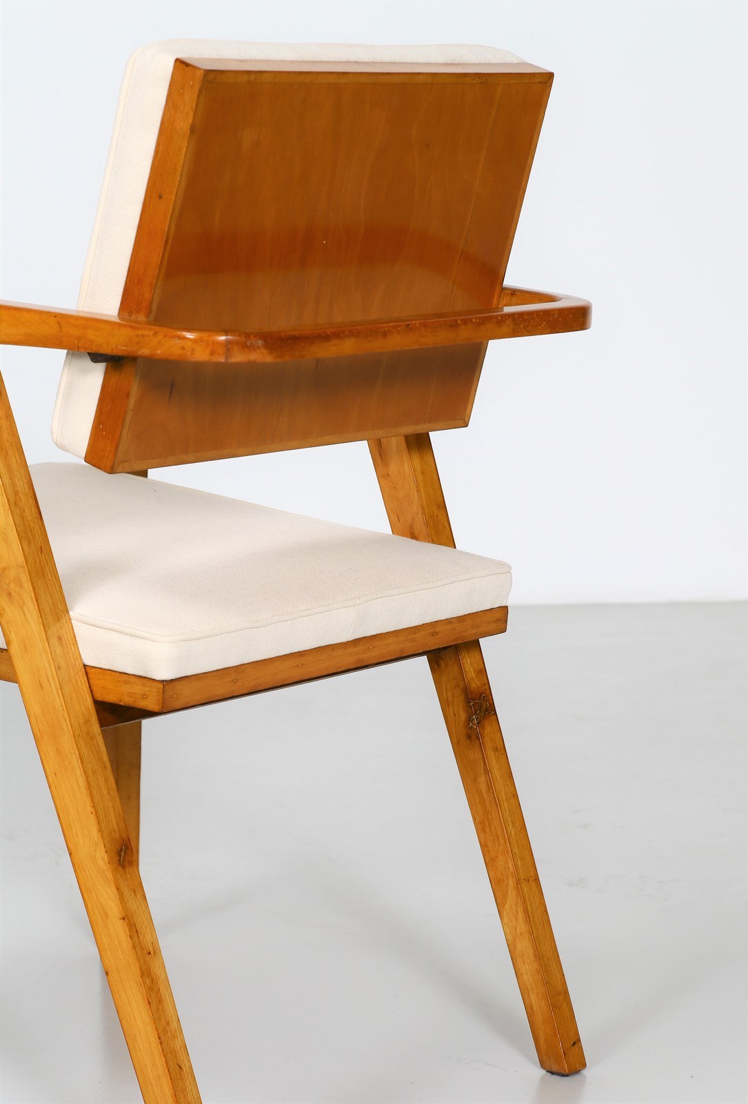 ALBINI FRANCO (1905 - 1977) Coppia di poltroncine. Tessuto e legno. Cm 53,00 x 77,00 x 60,00. Coppia di poltroncine in legno e tessuto imbottito, anni 30. Le poltroncine sono uno dei primi prototipi realizzati da Franco Albini che lo porteranno al disegno della più famosa Luisa nel 1949. Provenienza: Villa Baiocchi, Livorno, realizzata dall'Arch. Cesare Pascoletti. Si ringrazia l'archivio Franco Albini (Milano) per la conferma dell'attribuzione a Franco Albini, su richiesta dell'acquirente l'archivio si rende disponibile a produrre il certificato di autenticità.