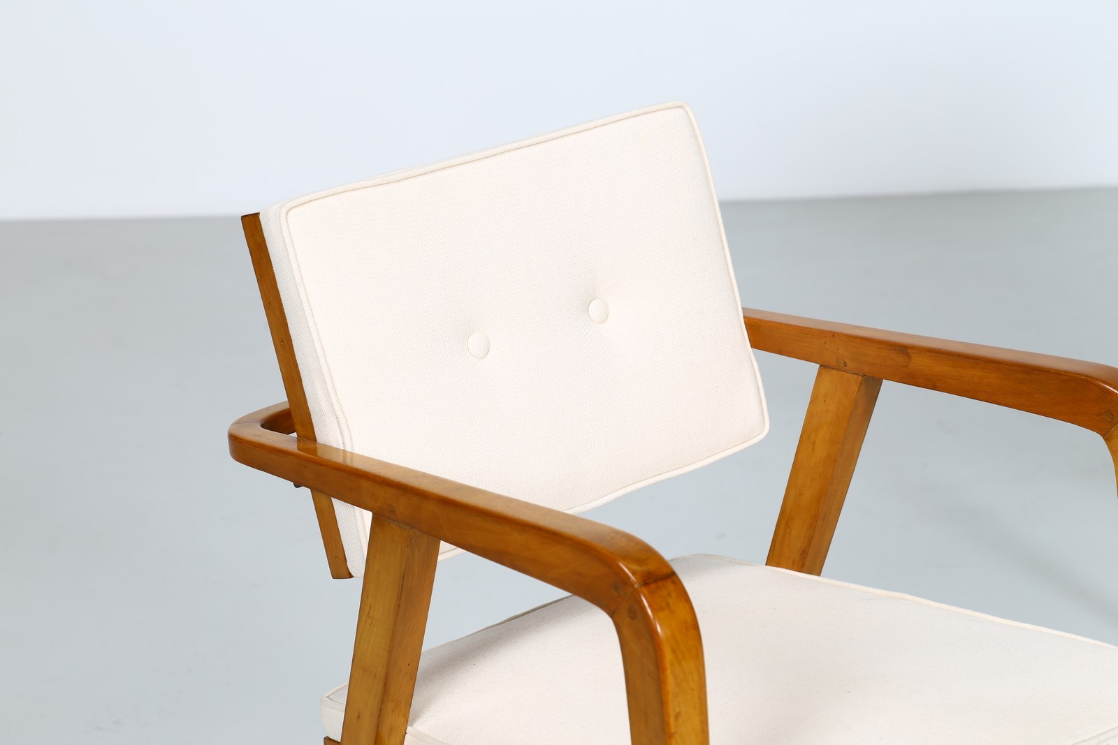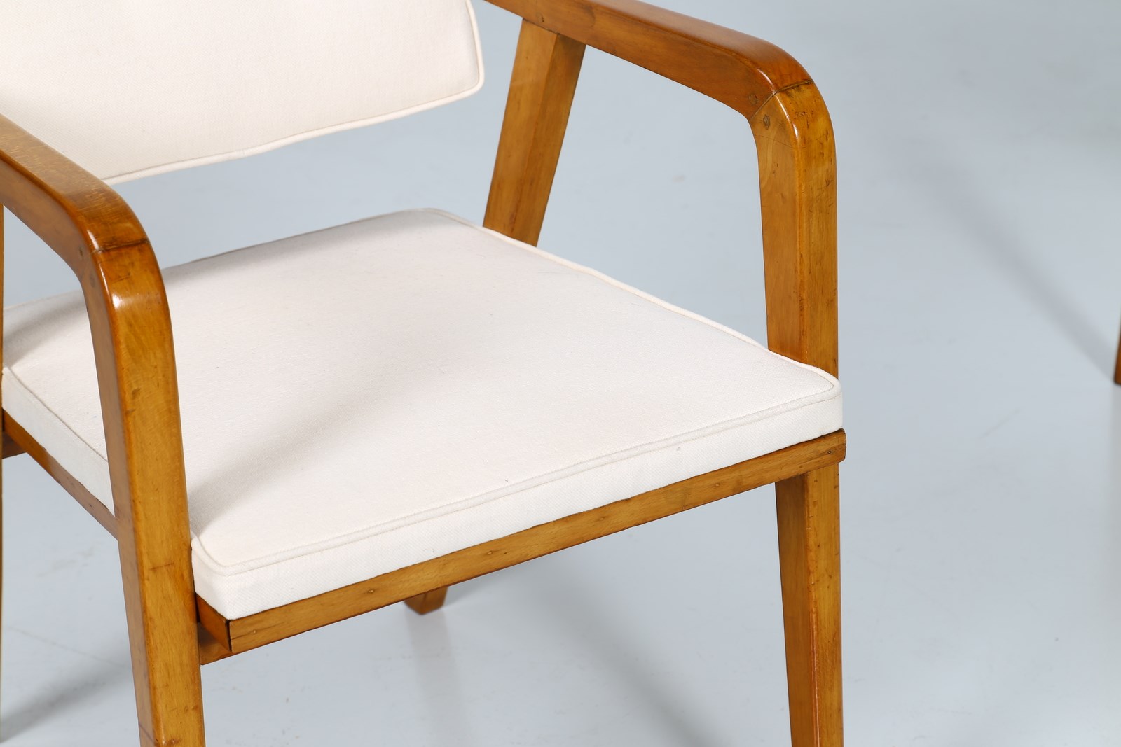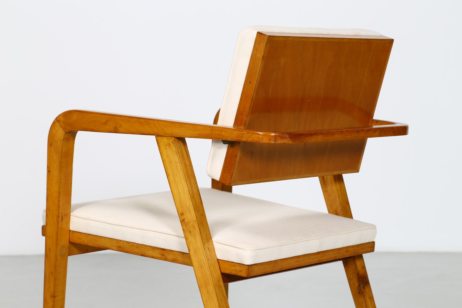 ALBINI FRANCO (1905 - 1977) Coppia di poltroncine. Tessuto e legno. Cm 53,00 x 77,00 x 60,00. Coppia di poltroncine in legno e tessuto imbottito, anni 30. Le poltroncine sono uno dei primi prototipi realizzati da Franco Albini che lo porteranno al disegno della più famosa Luisa nel 1949. Provenienza: Villa Baiocchi, Livorno, realizzata dall'Arch. Cesare Pascoletti. Si ringrazia l'archivio Franco Albini (Milano) per la conferma dell'attribuzione a Franco Albini, su richiesta dell'acquirente l'archivio si rende disponibile a produrre il certificato di autenticità.