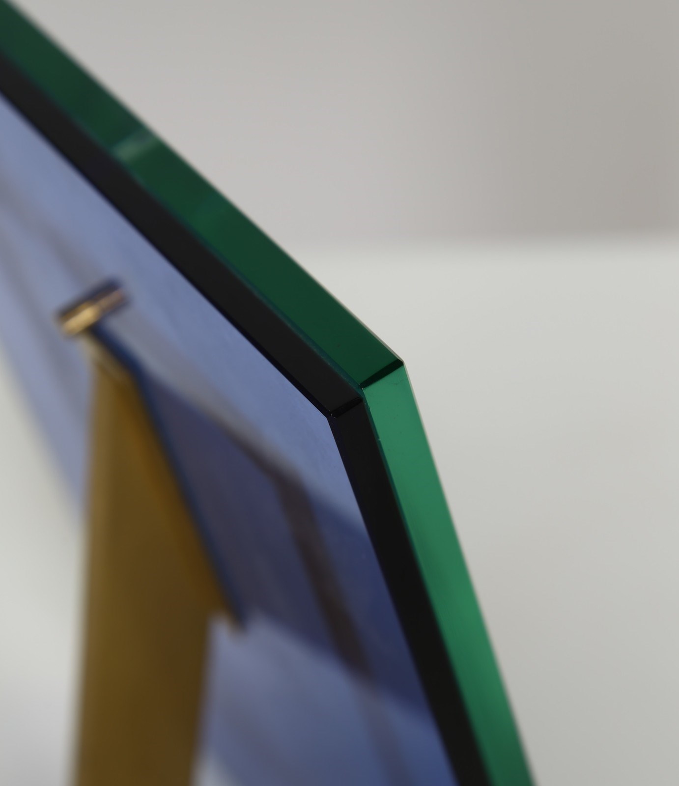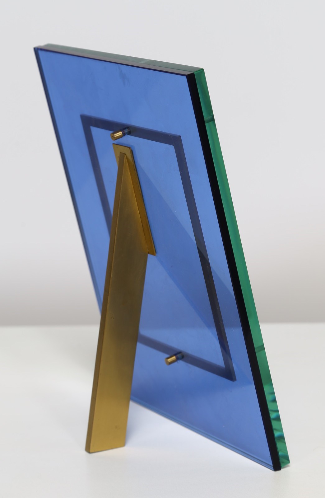 FONTANA ARTE Portafoto. Cristallo, ottone. Cm 22,00 x 29,00 x 12,00. Portafoto in cristallo molato con dettagli in ottone, anni 70. Pubblicazioni: Catalogo Fontana Arte, 1972.