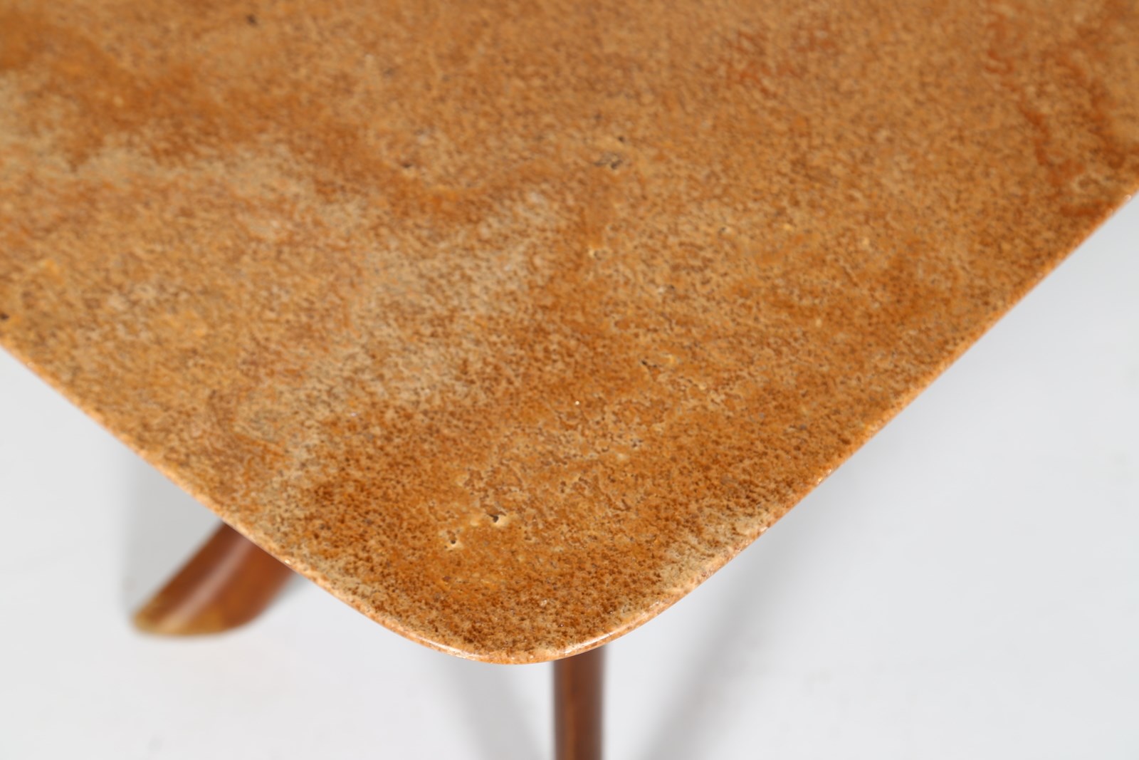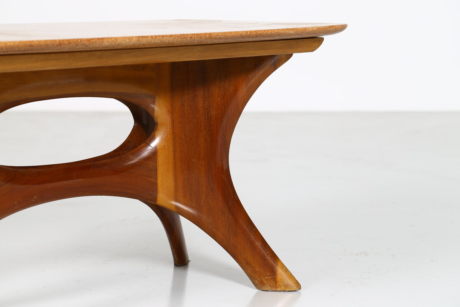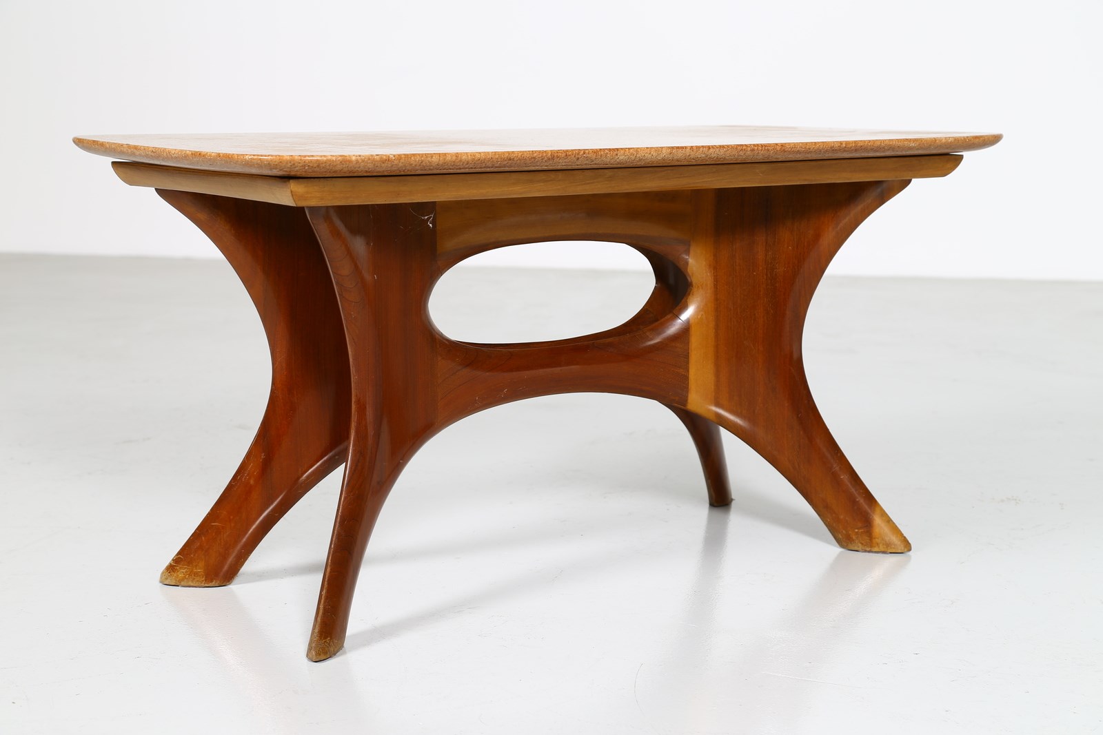 PARISI ICO (1916 - 1996) Attrib. Tavolo . Legno e marmo. Cm 92,50 x 47,00 x 52,50. Tavolino in legno con piano in marmo occhio di pernice, anni 40.