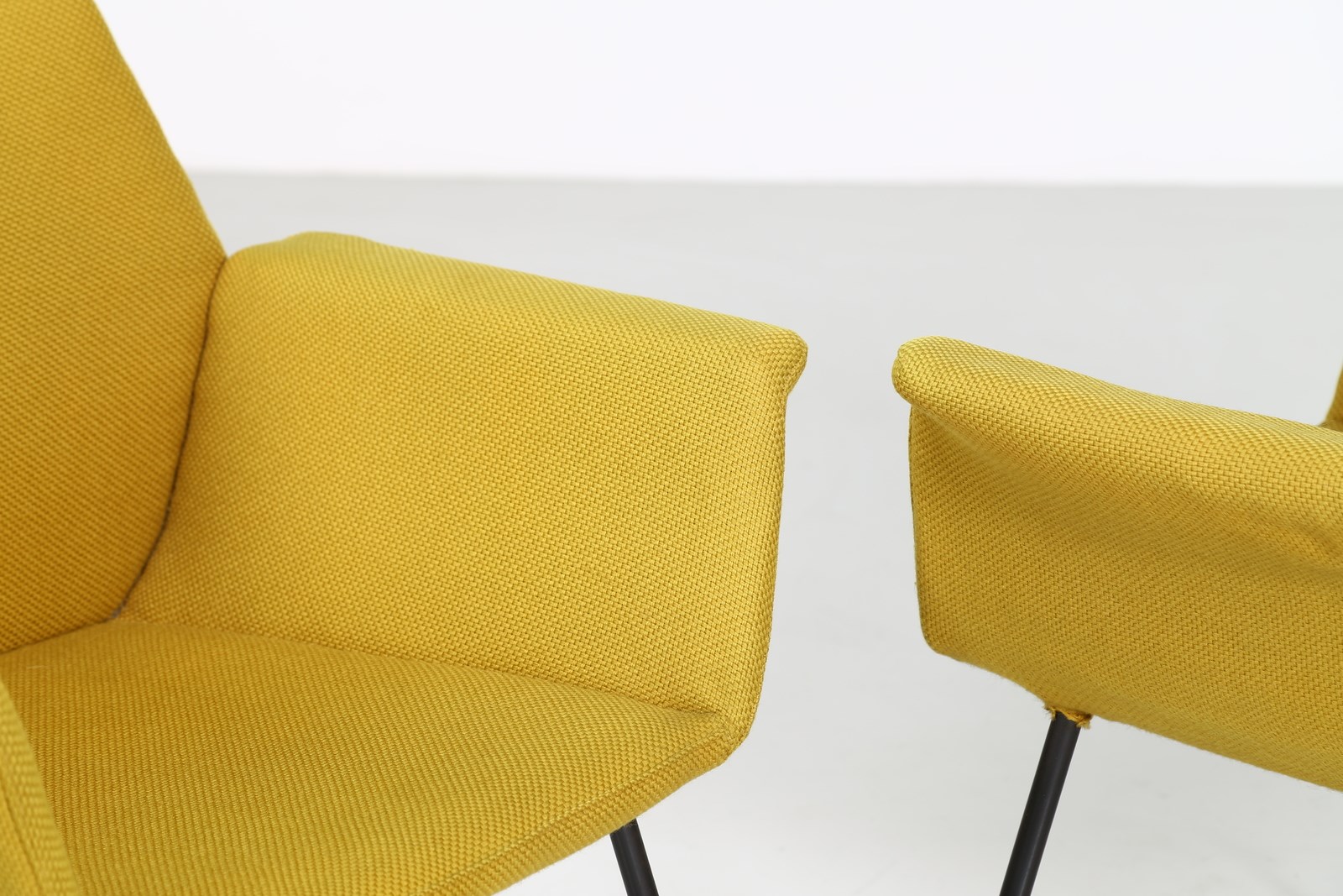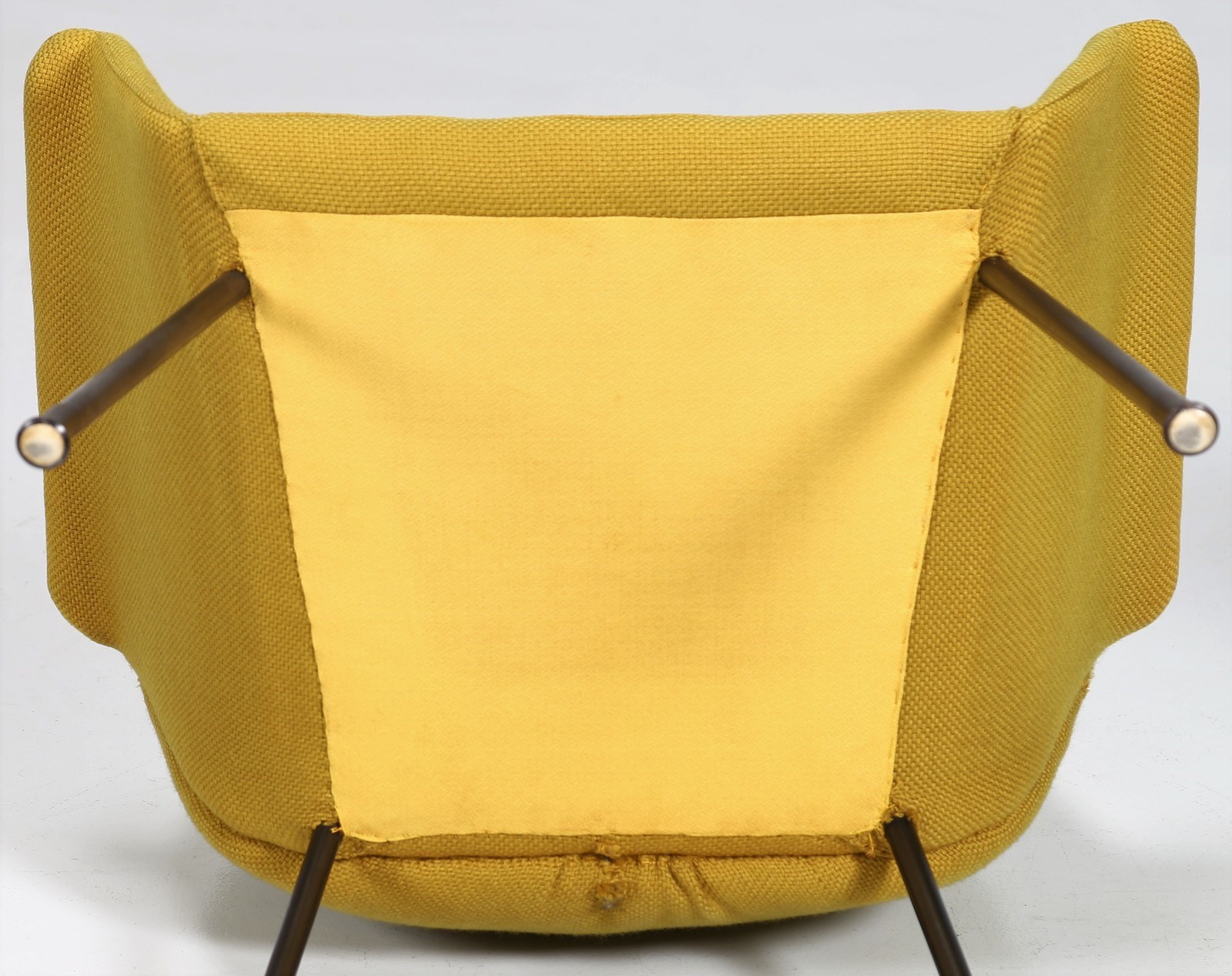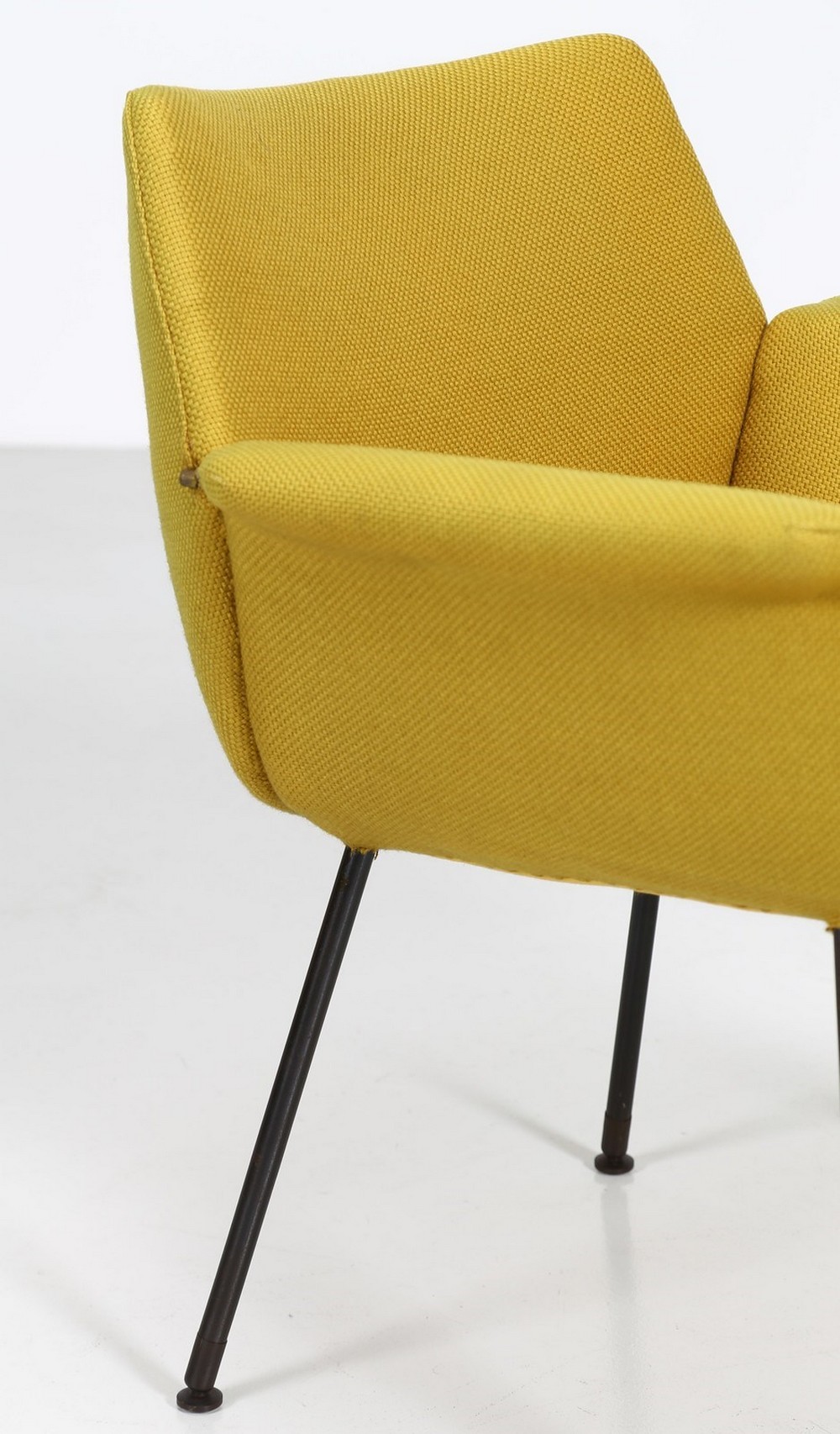 BOZZI AUGUSTO (1924 - 1982) Coppia di poltroncine. Metallo laccato, tessuto e ottone. Cm 72,00 x 77,00 x 57,00. Coppia di poltroncine in tubolare metallico e tessuto, per Saporiti Italia, anni 60. Pubblicazioni per modelli simili: Domus, n. 324, novembre 1956, p. 38 - Domus, n. 400, marzo 1963, p. 11