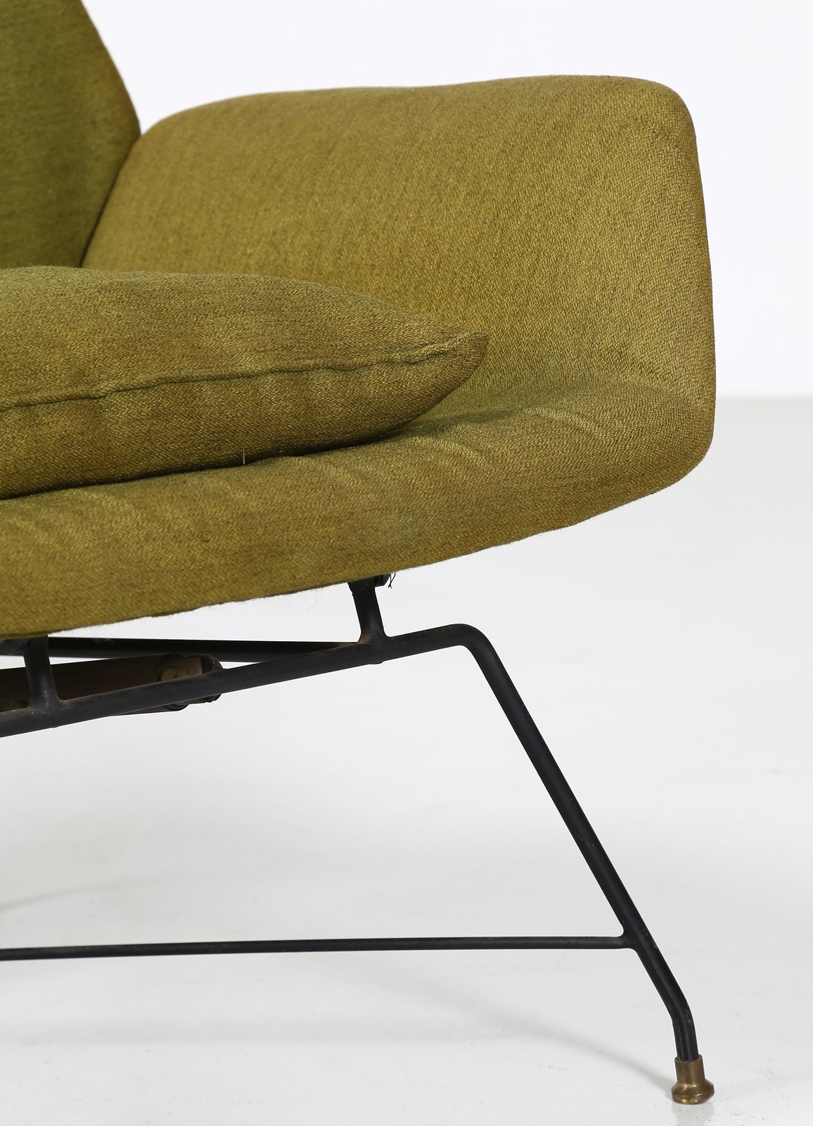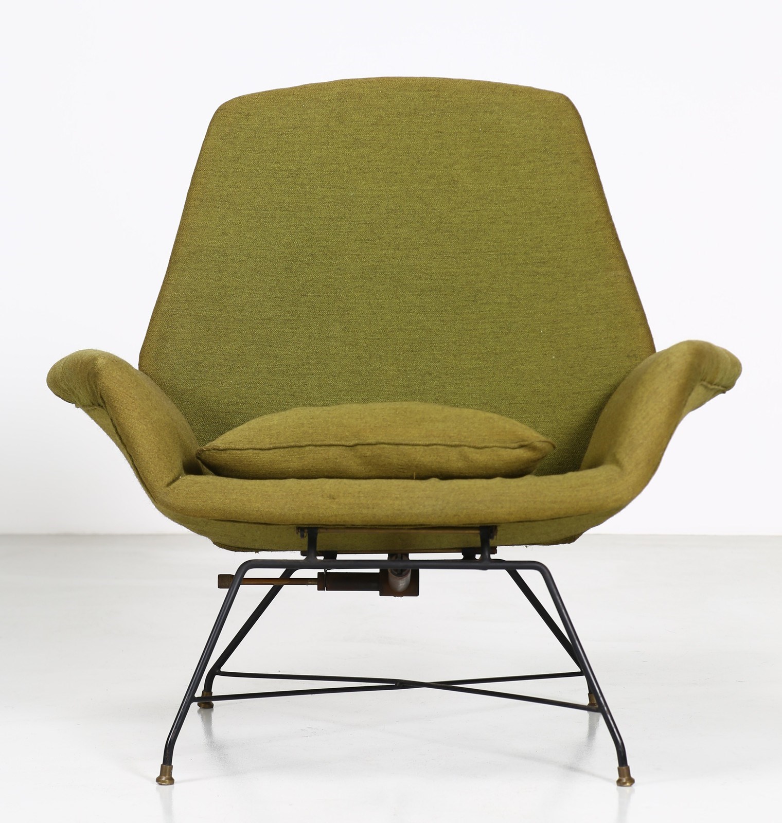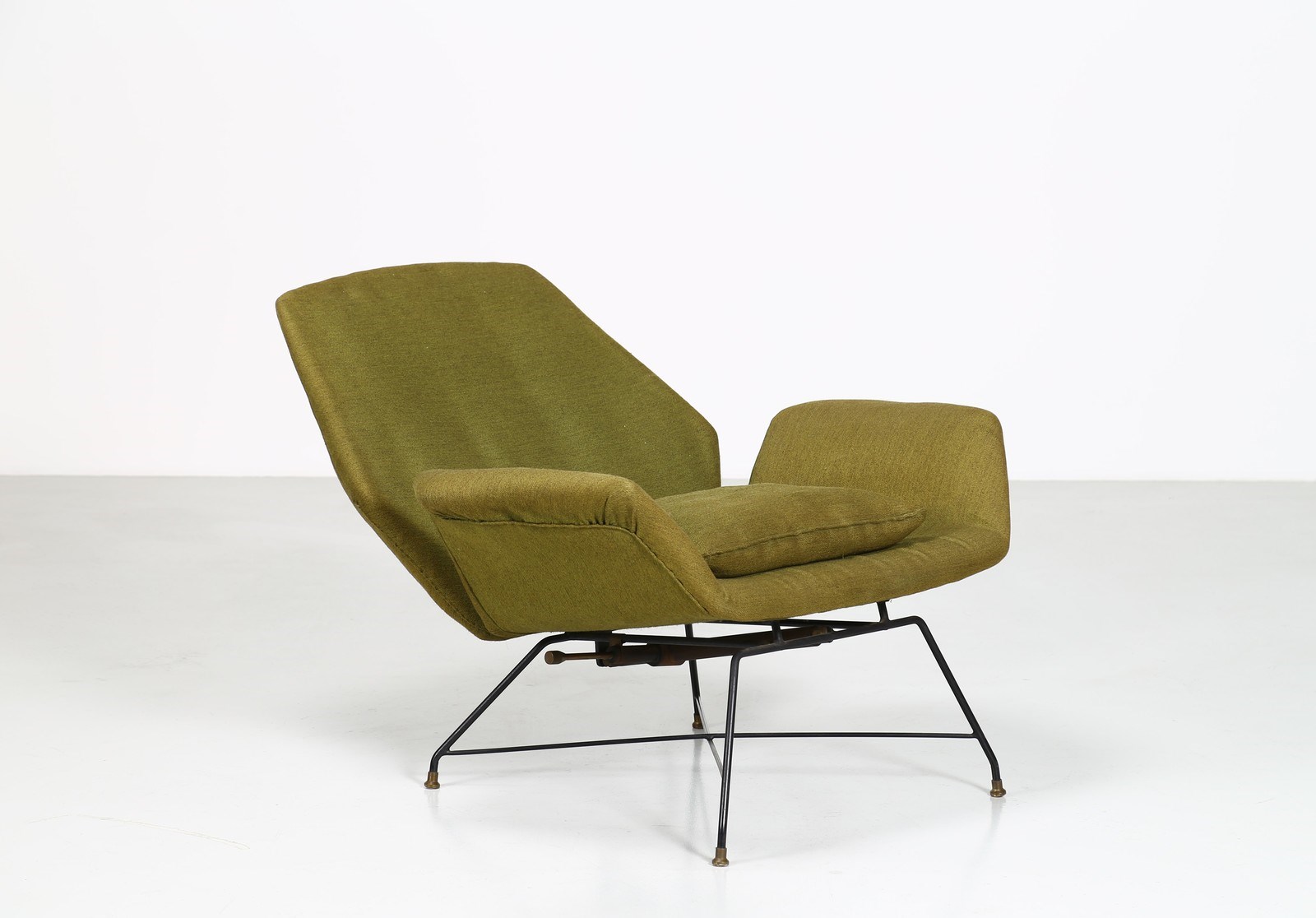 BOZZI AUGUSTO (1924 - 1982) Poltrona. Metallo e tessuto. Cm 96,50 x 90,00 x 82,00. Poltrona relax modello Kelly Minor in tubolare metallico e tessuto, per Saporiti, anni 50. Pubblicazioni per modelli simili: Domus, n. 400, marzo 1963, p. 11