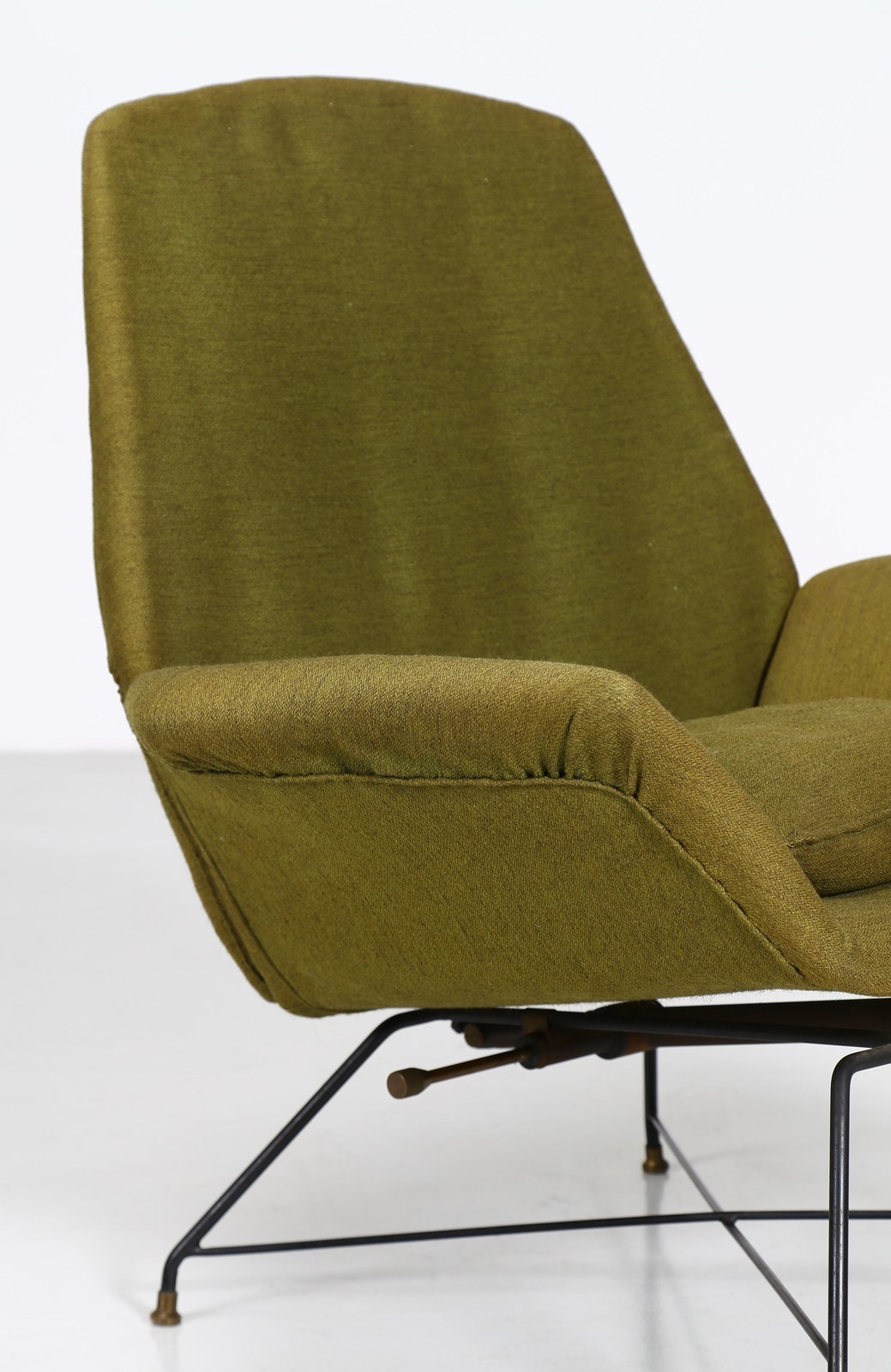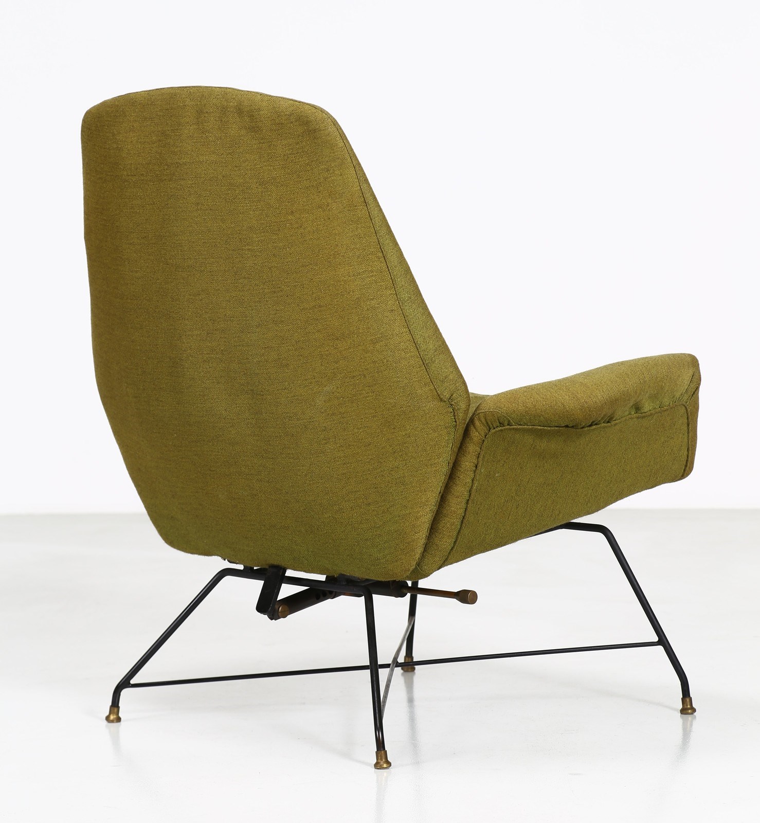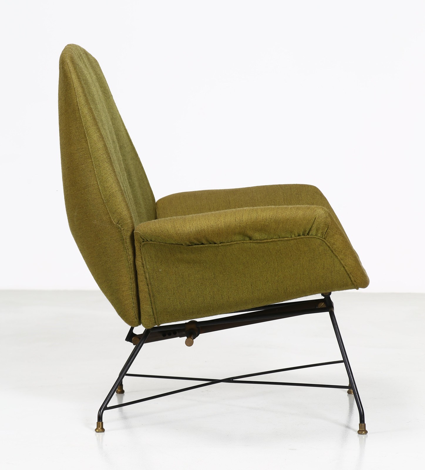 BOZZI AUGUSTO (1924 - 1982) Poltrona. Metallo e tessuto. Cm 96,50 x 90,00 x 82,00. Poltrona relax modello Kelly Minor in tubolare metallico e tessuto, per Saporiti, anni 50. Pubblicazioni per modelli simili: Domus, n. 400, marzo 1963, p. 11