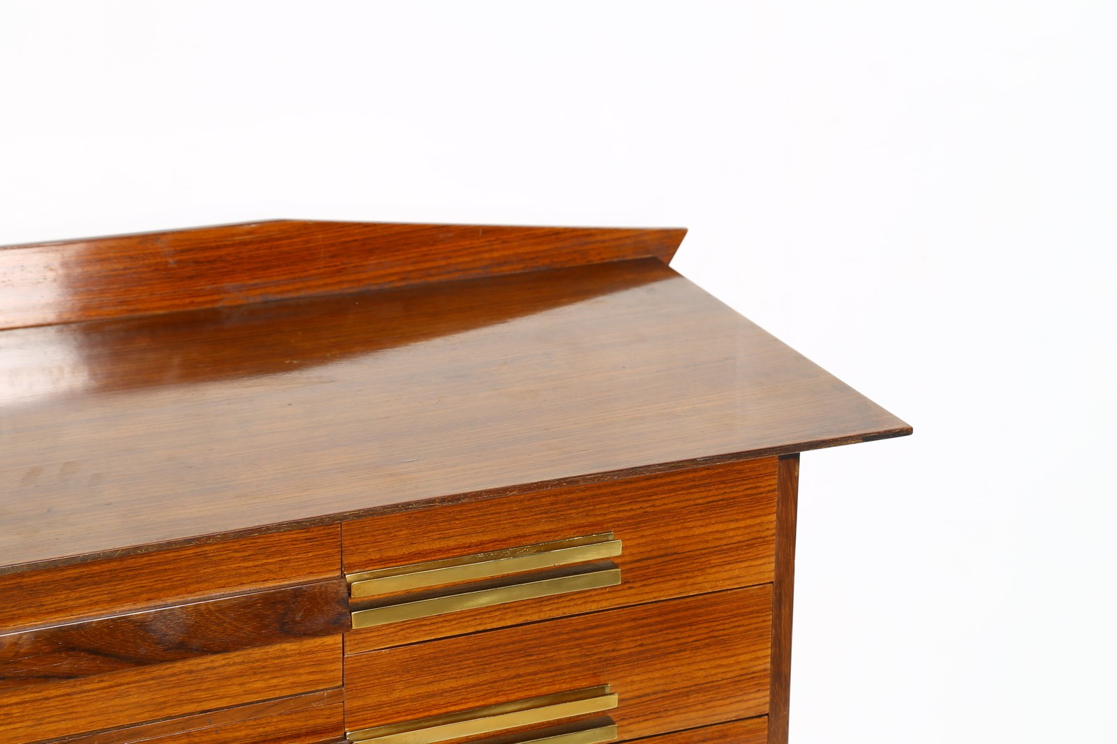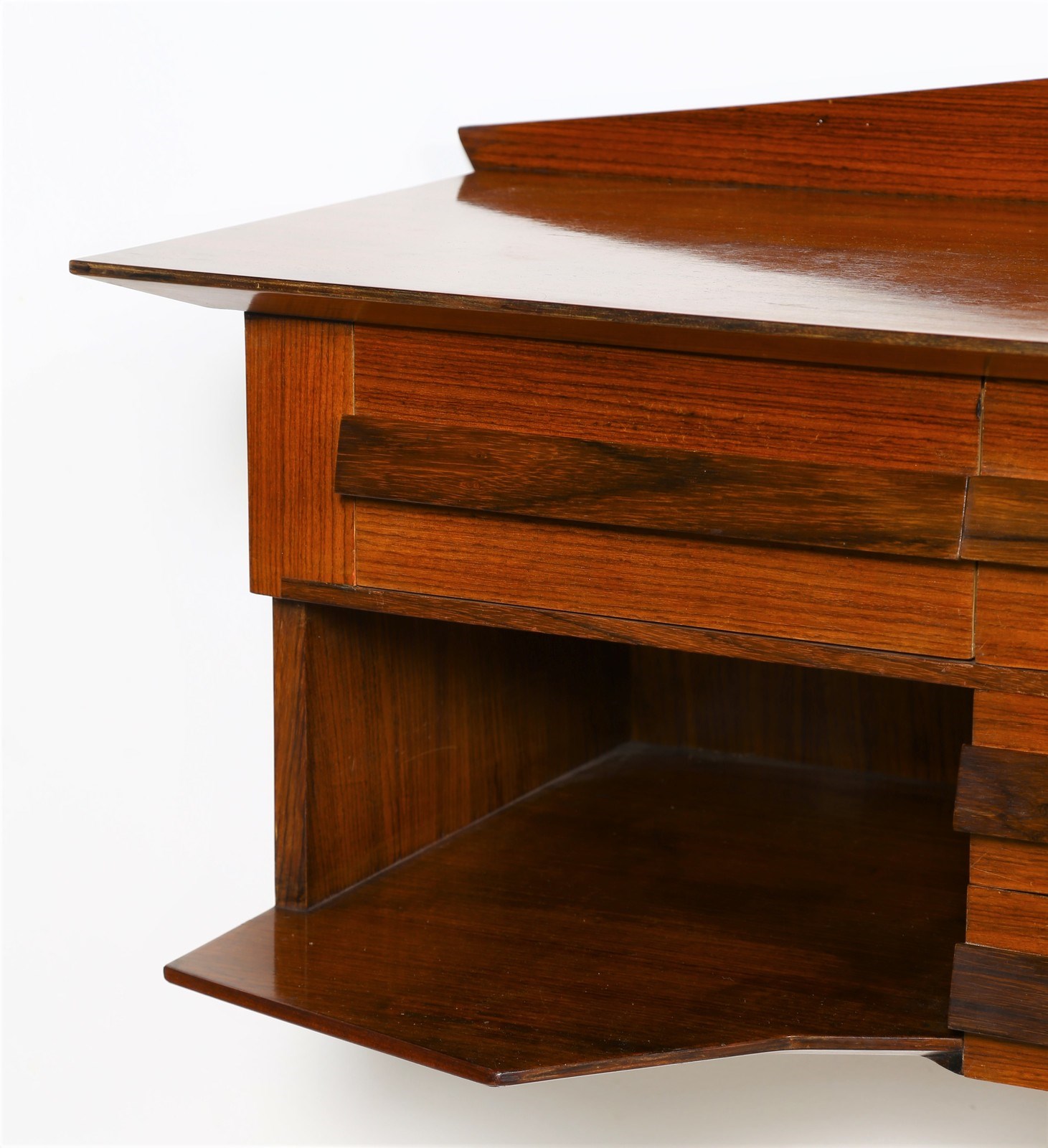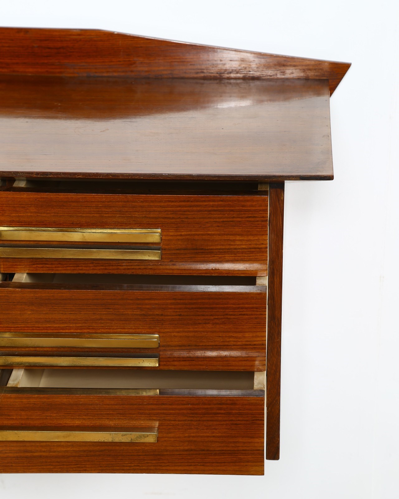 DASSI M.M. Consolle. Legno e ottone. Cm 142,00 x 40,00 x 44,00. Consolle sospesa in legno di palissandro, ottone e legno laccato, anni 50.