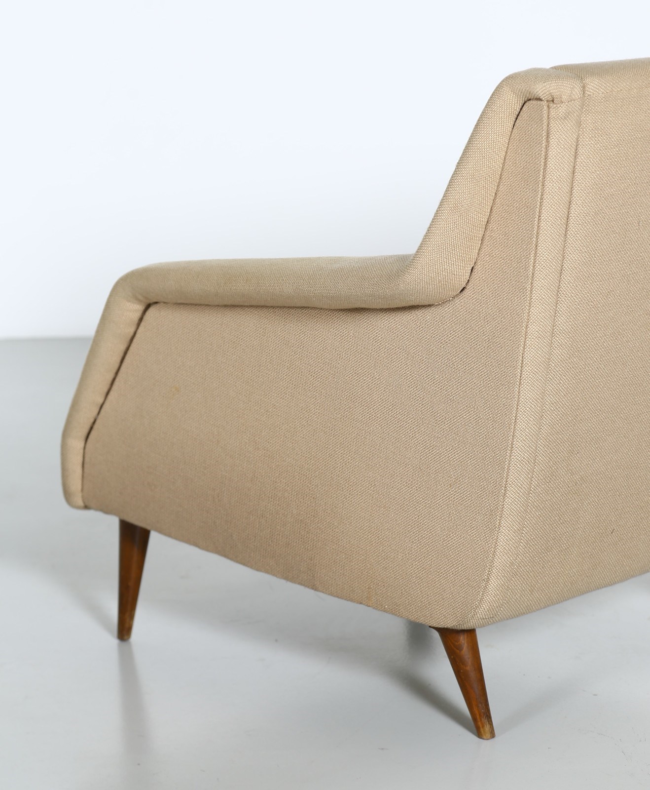 DE CARLI CARLO (1910 - 1999) Coppia di poltrone. Legno e tessuto. Cm 73,00 x 76,00 x 73,00. Coppia di poltrone mod. 802. , per Cassina, metà anni 50. Legno di noce tornito, tessuto imbottito. Pubblicazioni: M. P. Maino, I. de Guttry, Il mobile italiano degli anni 40 - 50,Laterza 1992, p. 159 - Gramigna G., Repertorio del design italiano per l'arredamento domestico, 1950- 2000, Ed. Umberto Allemandi & C., 2003, Torino, p. 34.