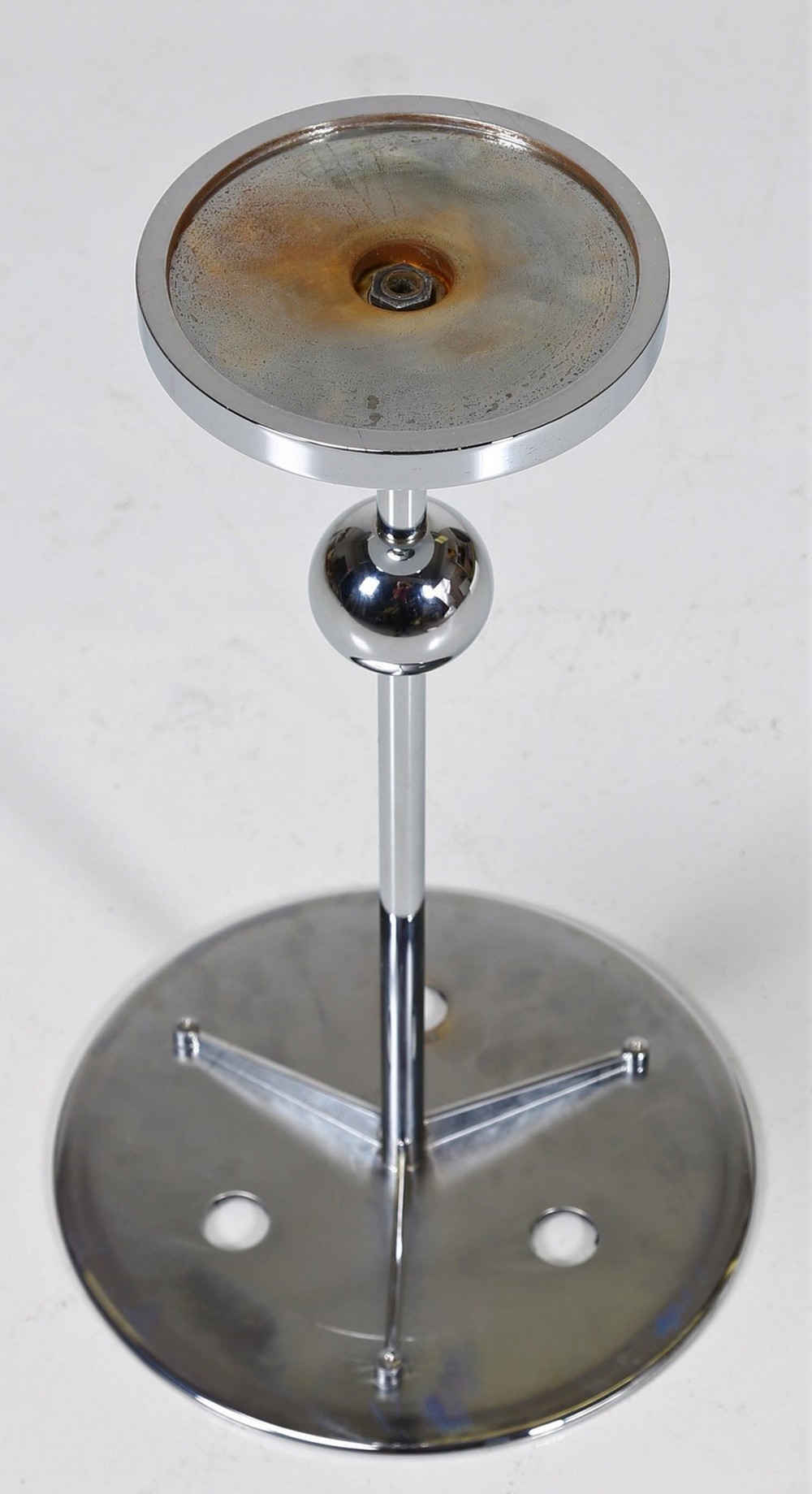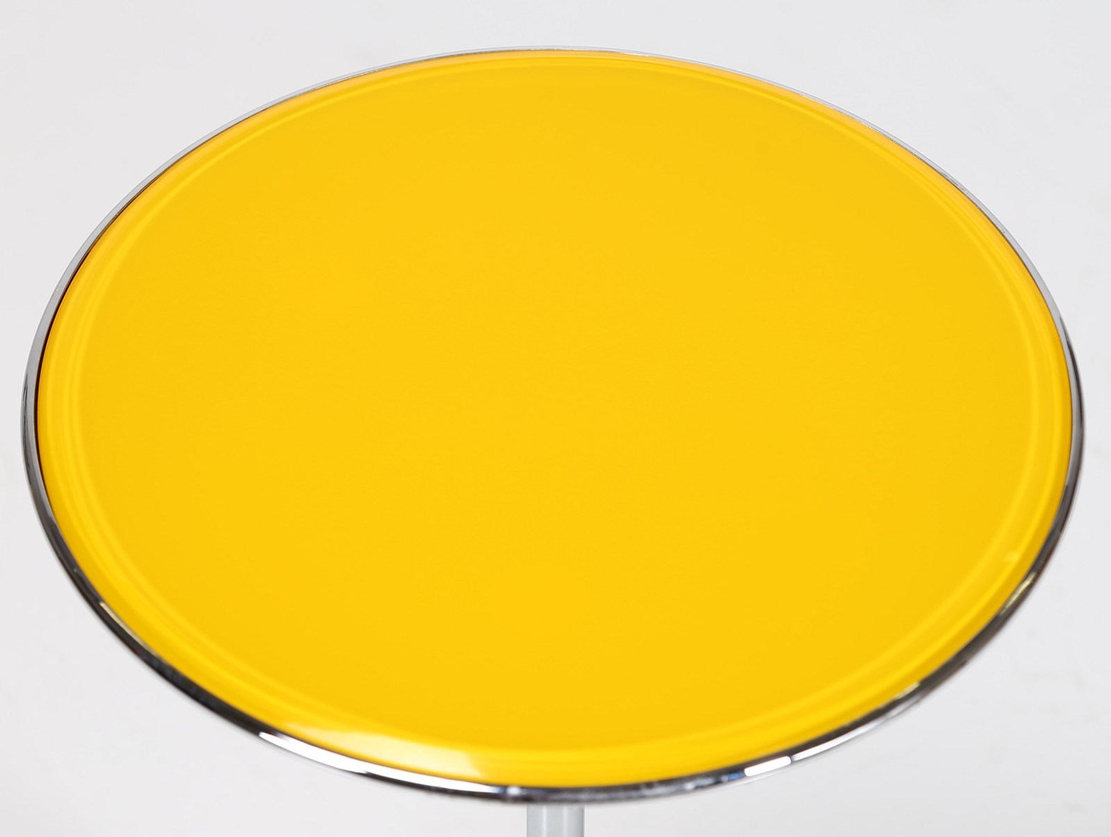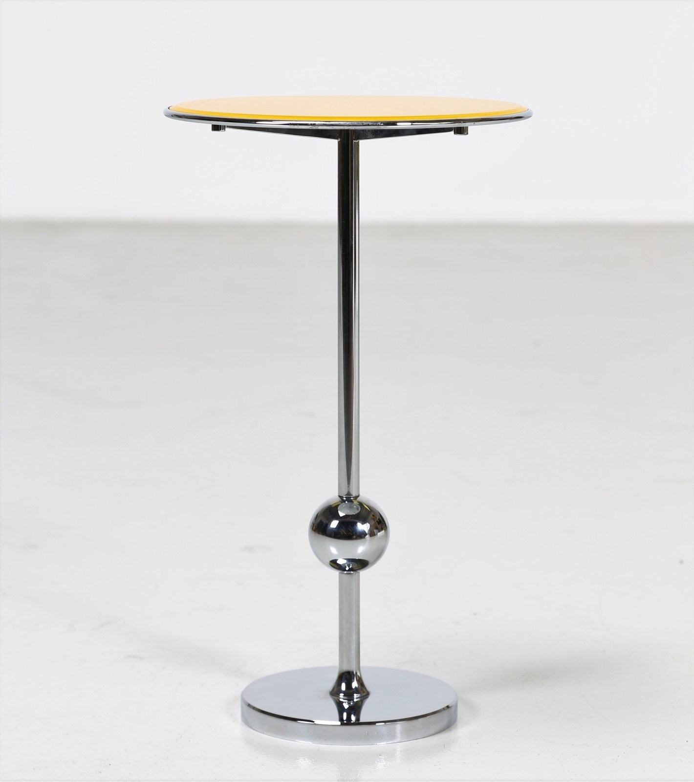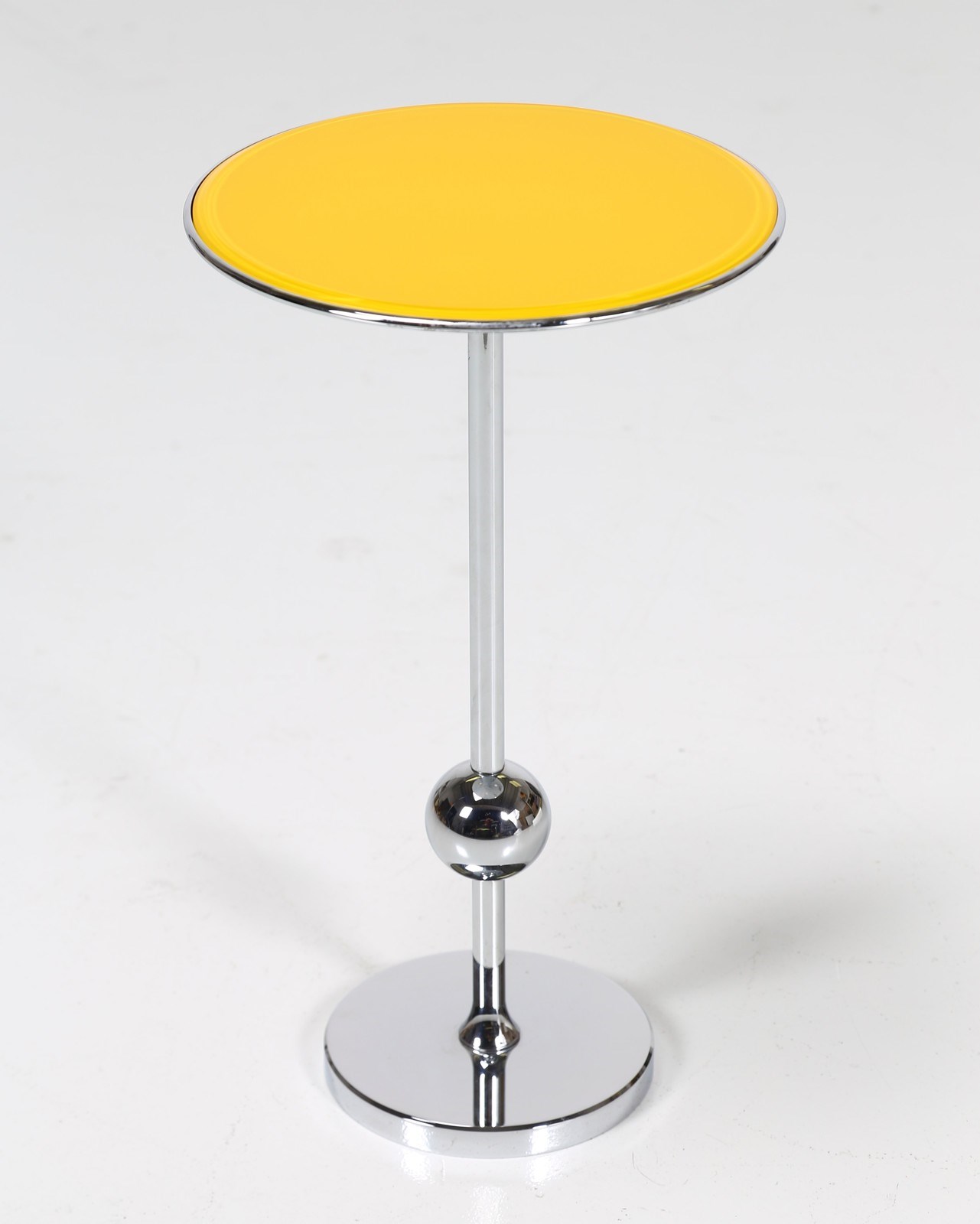 BORSANI OSVALDO (1911 - 1985) Tavolino. Vetro e ottone cromato.. Cm 26,00 x 44,50 x 26,00. Tavolino servomuto mod. T1, prodotto da Tecno. Struttura in metallo cromato e vetro colorato giallo,Pubblicazioni: G. Gramigna, F. Irace, Osvaldo Borsani, Roma 1992, p. 193