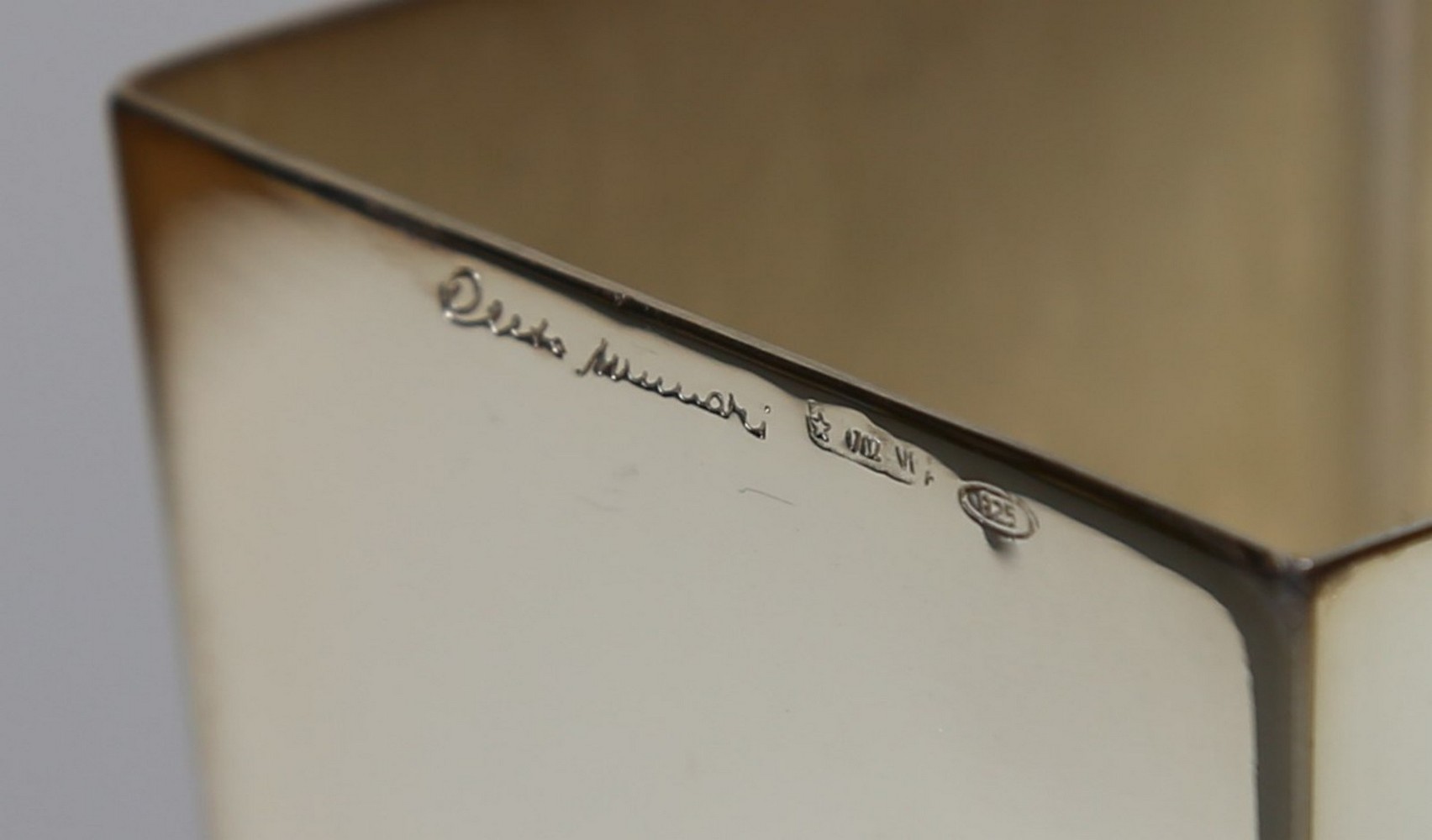 MUNARI CLETO Vaso. Argento. Cm 8,00 x 36,00 x 8,00. Vaso a parallelepipedo in argento 925, presente punzone e firma "Cleto Munari".