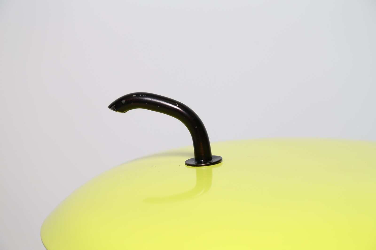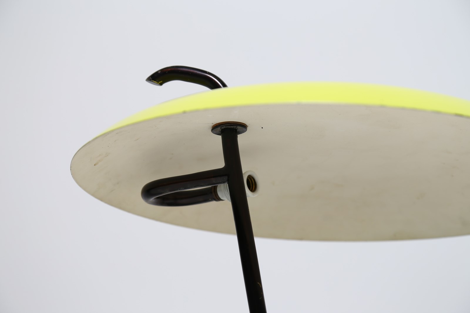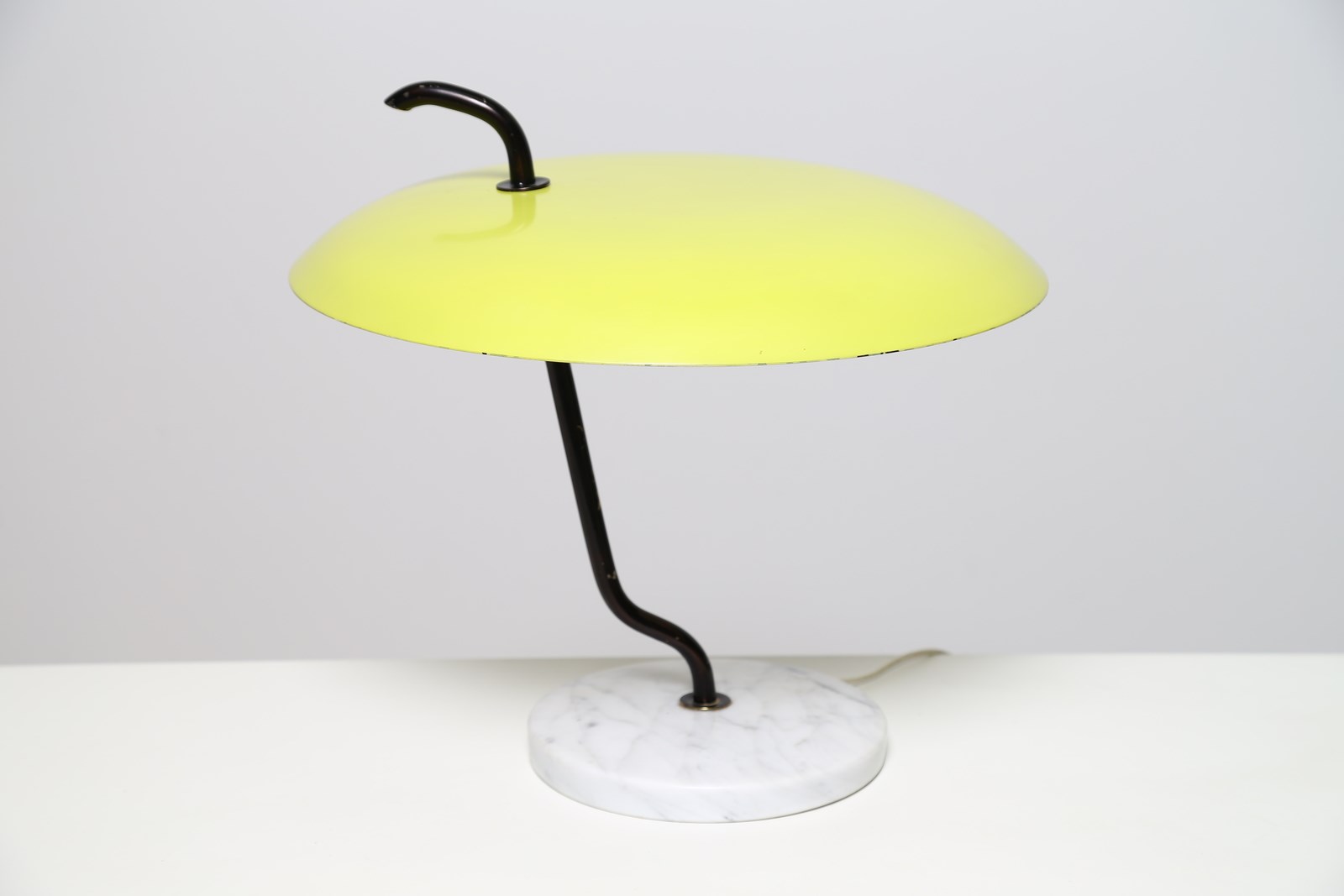 SARFATTI GINO (1912 - 1985) Attrib. Lampada da tavolo. Metallo laccato, ottone e marmo. Cm 40,00 x 37,00 x 40,00. Lampada da tavolo, anni 50. Cupola riflettente in ottone laccato giallo, stelo forgiato a maniglia in metallo laccato e base in marmo. Pubblicazioni per modello simile: Romanelli M, Severi S., Gino Sarfatti, opere scelte 1938-1973, Silvana Editoriale, Milano 2012, p. 427, modello 537 G/P
